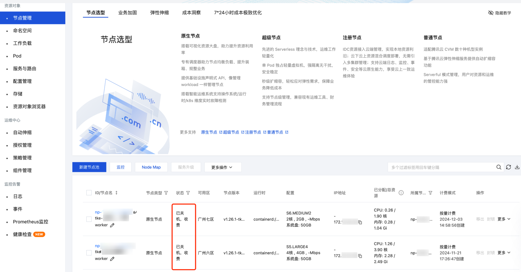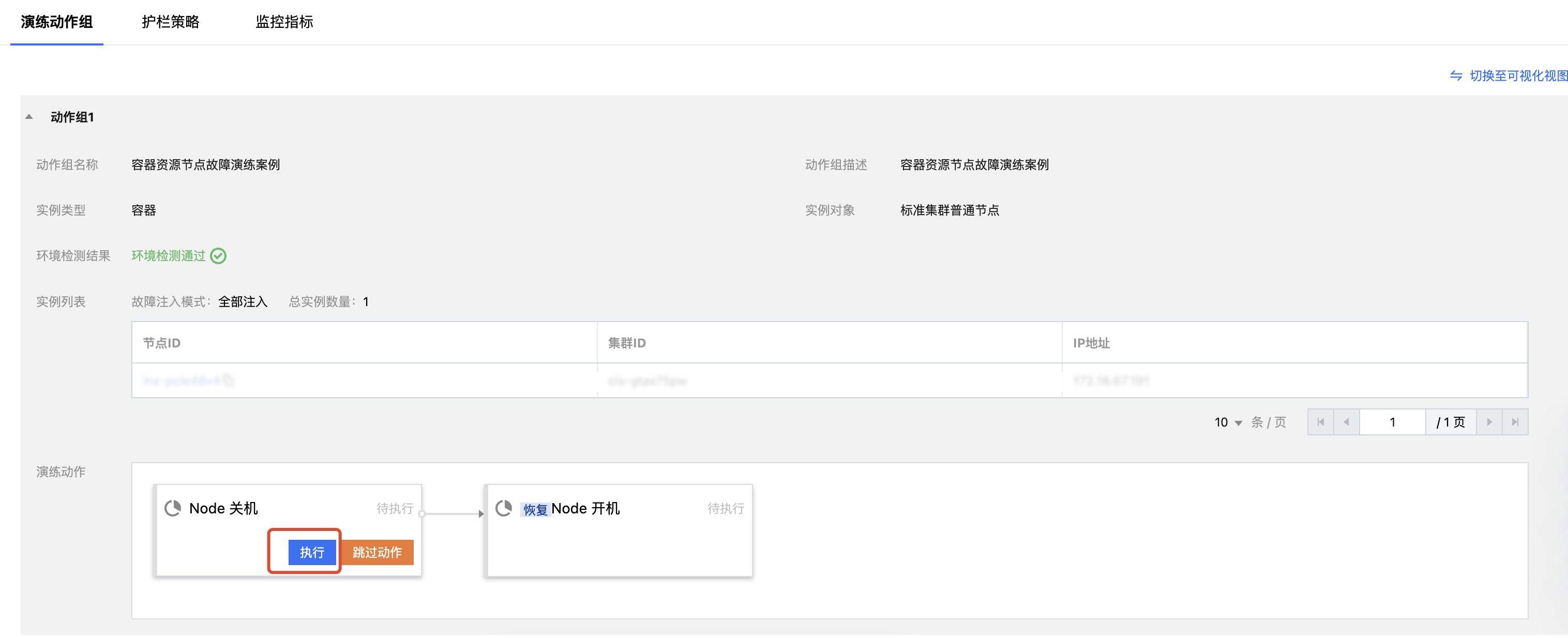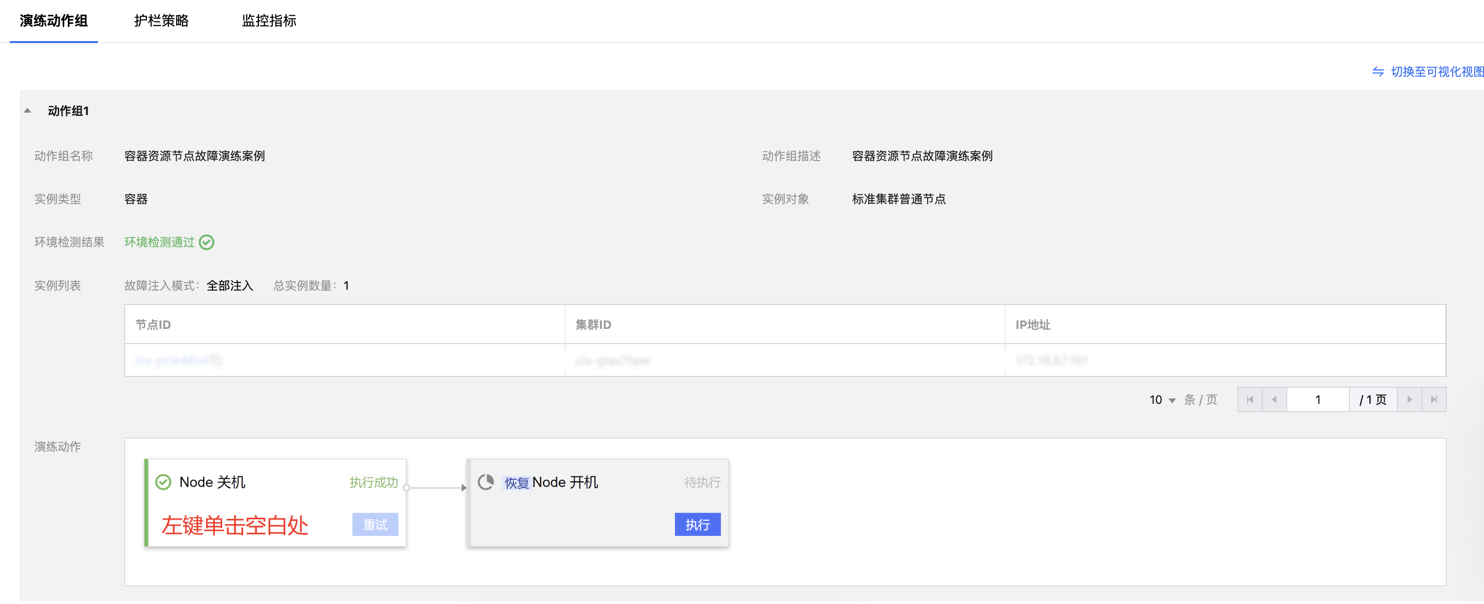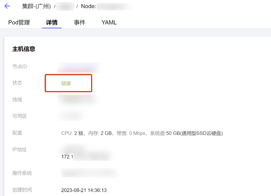 3. 选择左侧导航中的节点管理,在节点页签中,单击节点名称,在节点详情页中查看故障执行前节点状态。