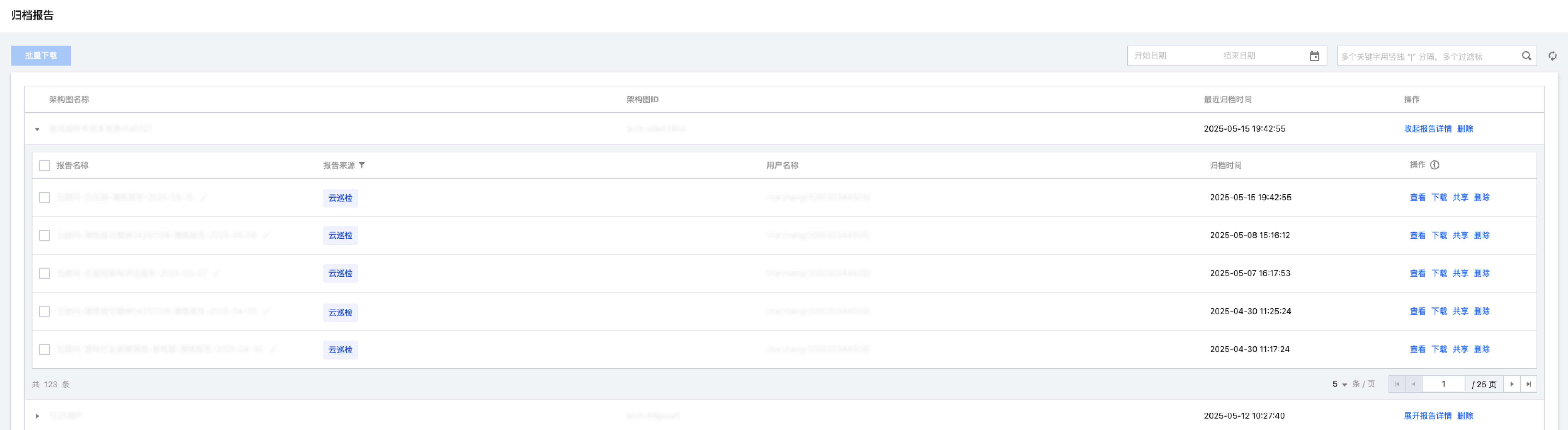 2. 单击报告归档,则可在“数字资产”中归档该巡检报告用于下载、共享、查看。如下图所示: