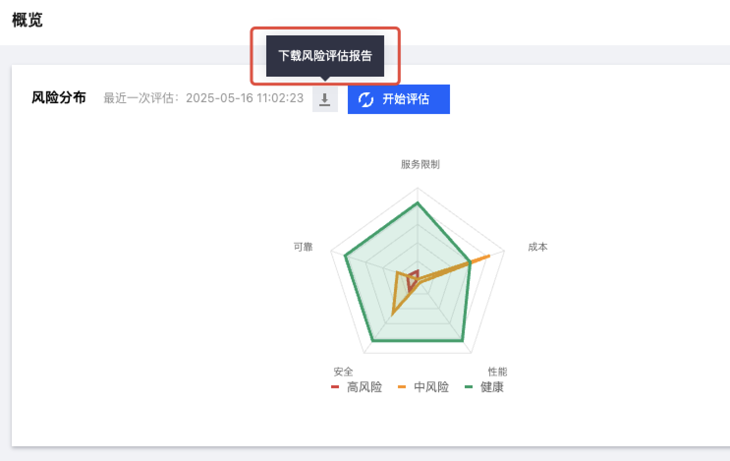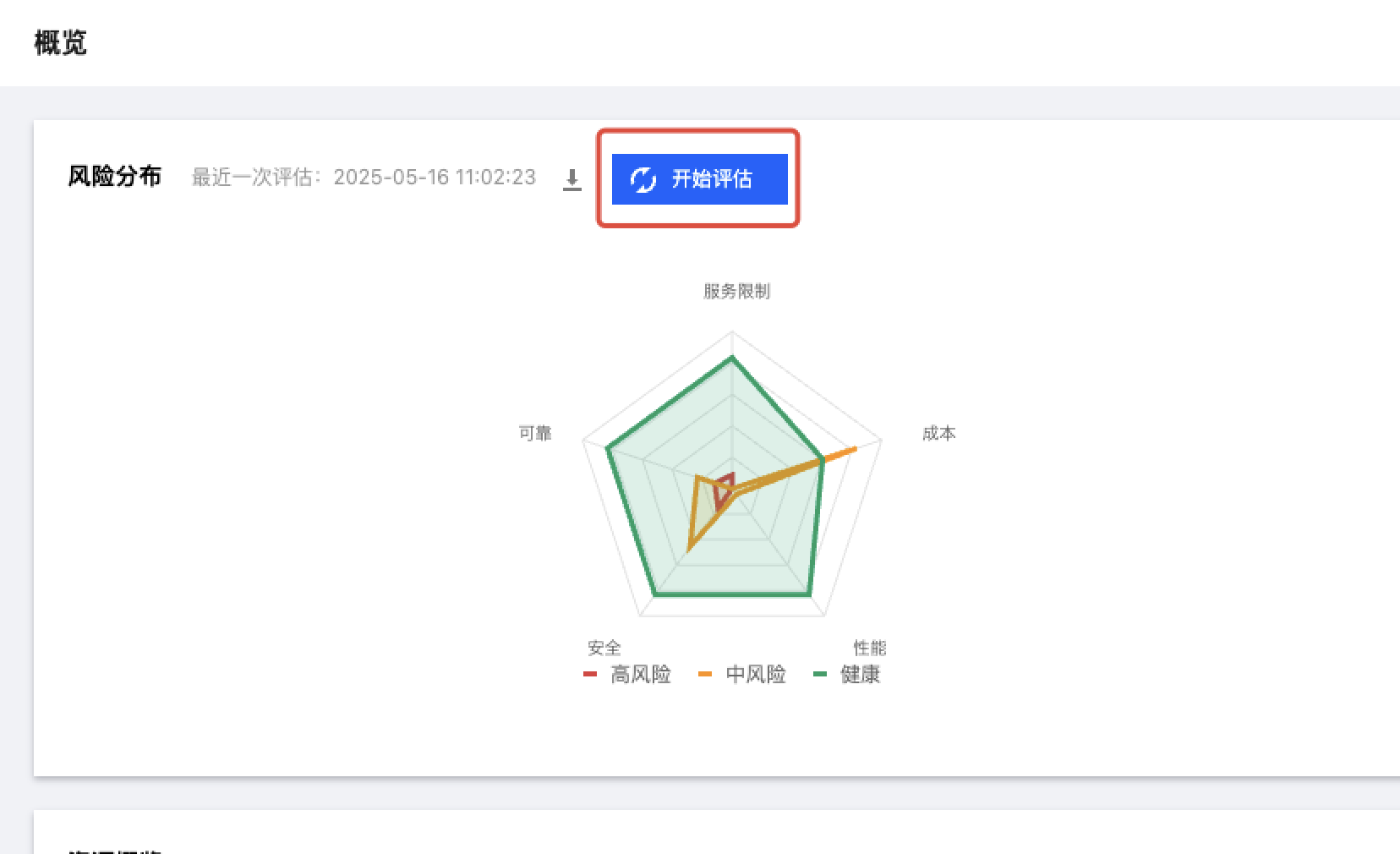 2. 在概览页面中单击开始评估/再次评估,后台将进行自动评估。如下图所示: