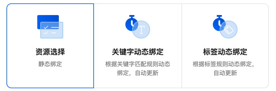 手工绘图:通过拖拉拽的方式自由构图,图形元素丰富,操作便利。在架构图绘制完成后,可手动进行资源绑定来建立架构图和云上资源的关联关系。目前提供了三种资源绑定方式,以适配各种应用场景: