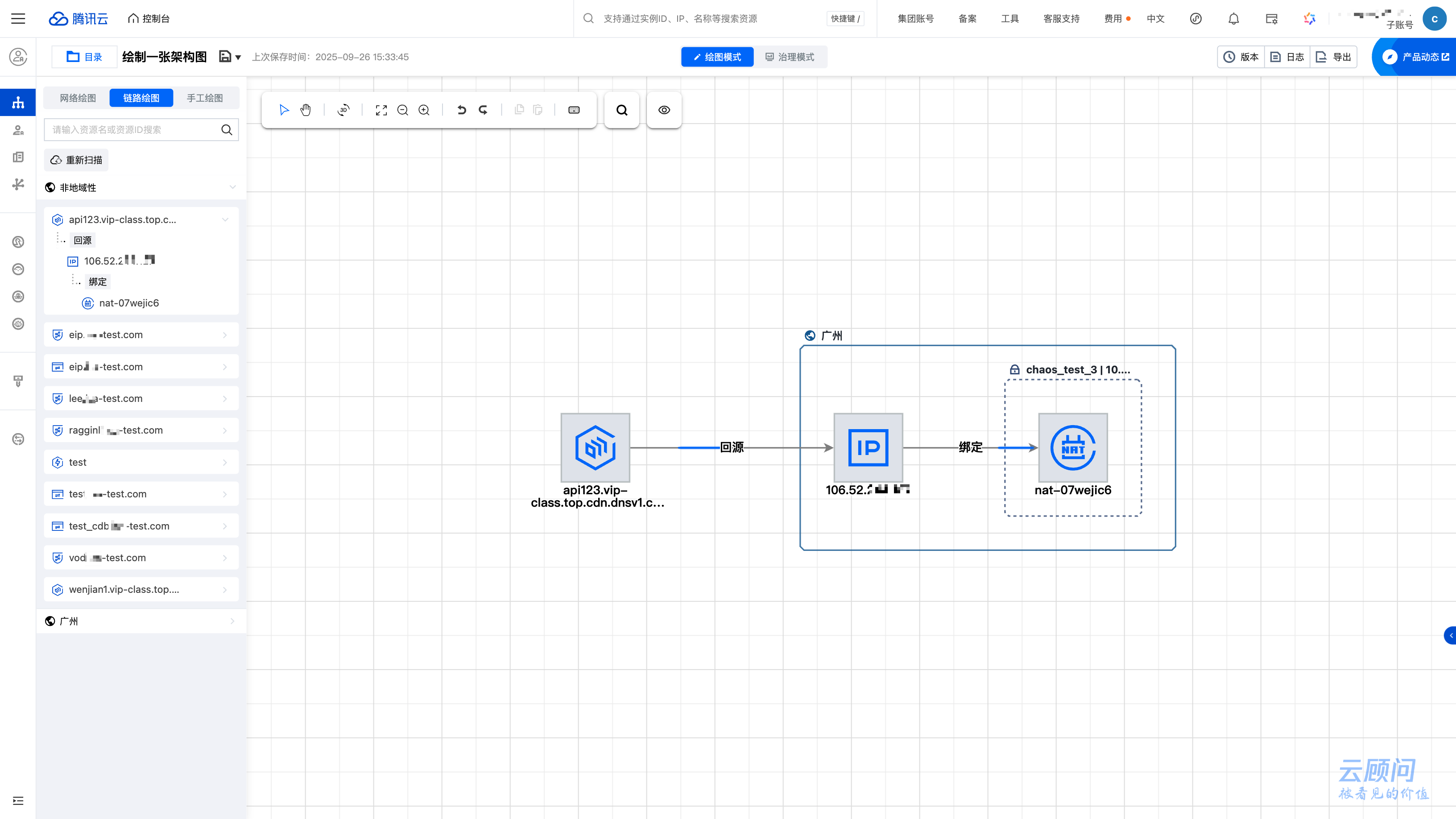 网络绘图:将您的云上资源,一键按照地域、VPC、可用区、子网的层级生成网络拓扑。