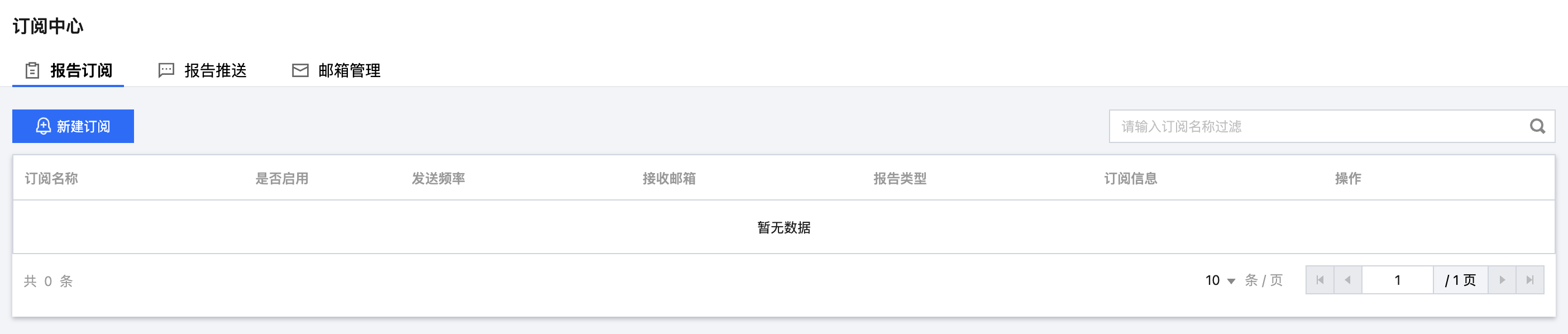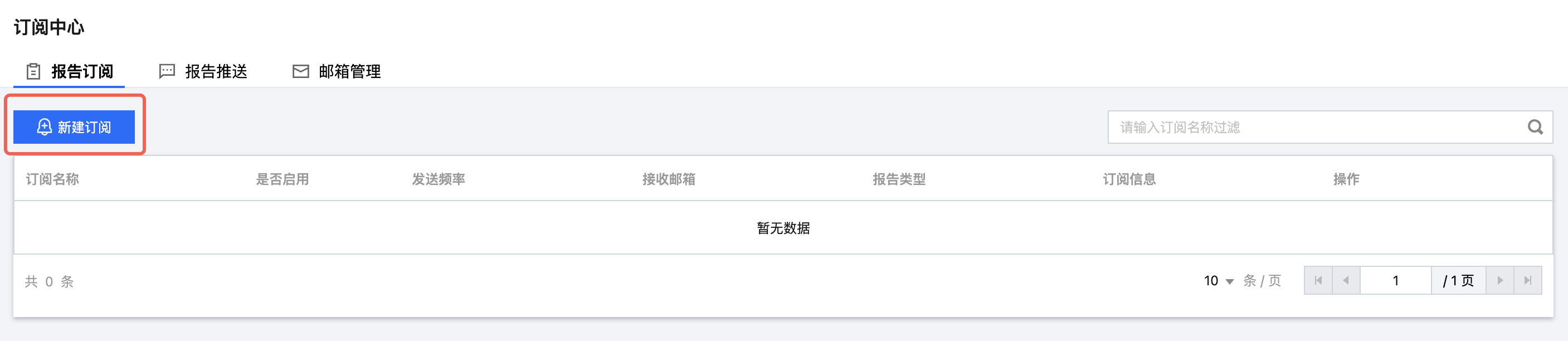 2. 在报告订阅中,单击新建订阅。如下图所示: