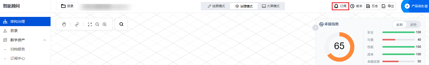 若当前架构图已绑定实例,单击页面右上角订阅选项。
