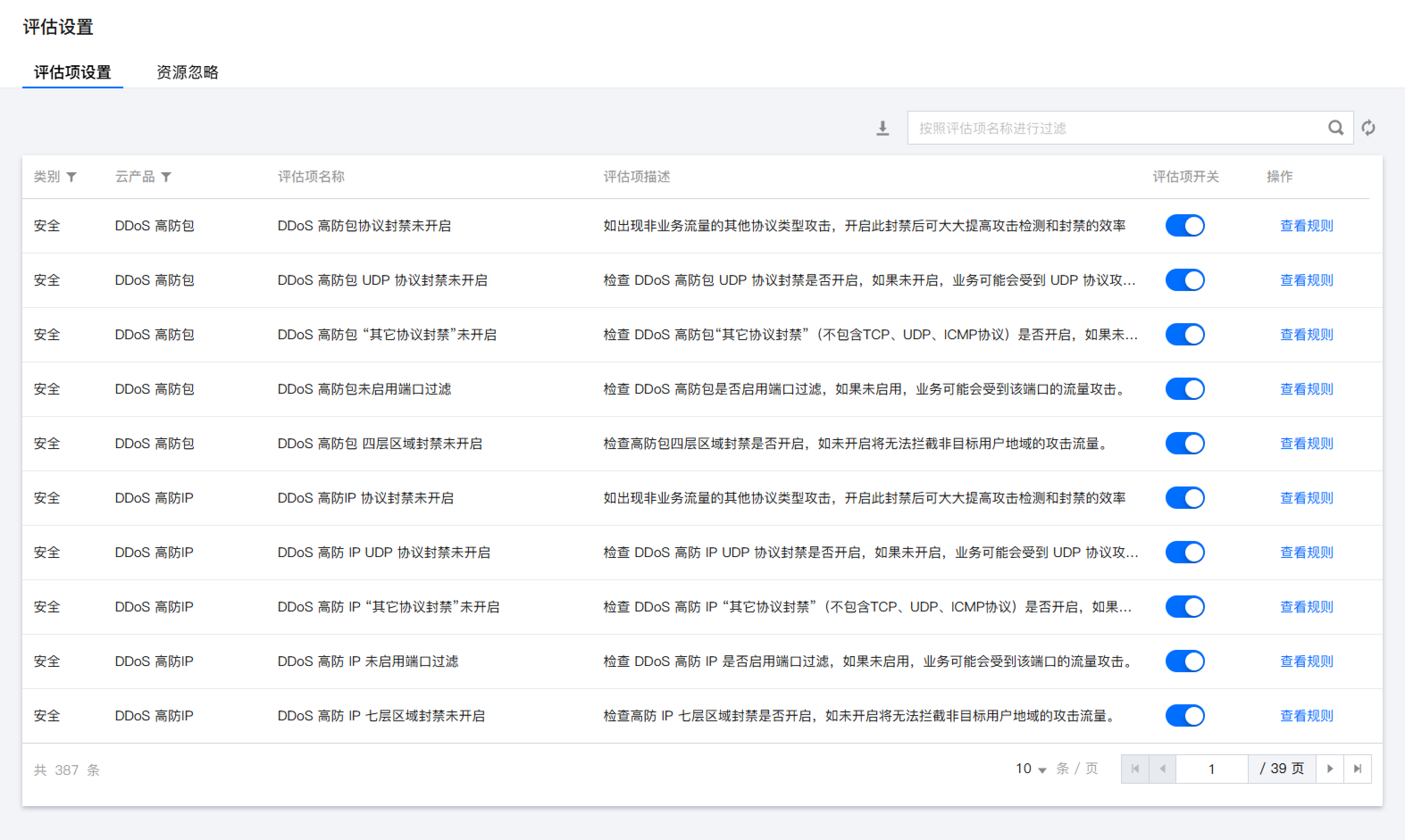 智能顾问的风险巡检项包含安全、可靠、服务限制、成本及性能五个类别。您可以通过控制台的