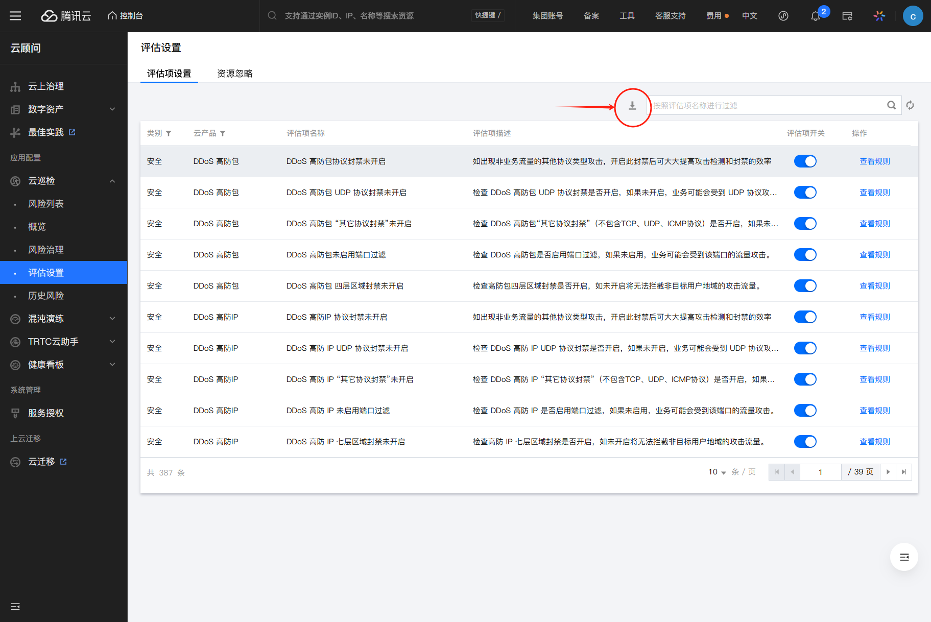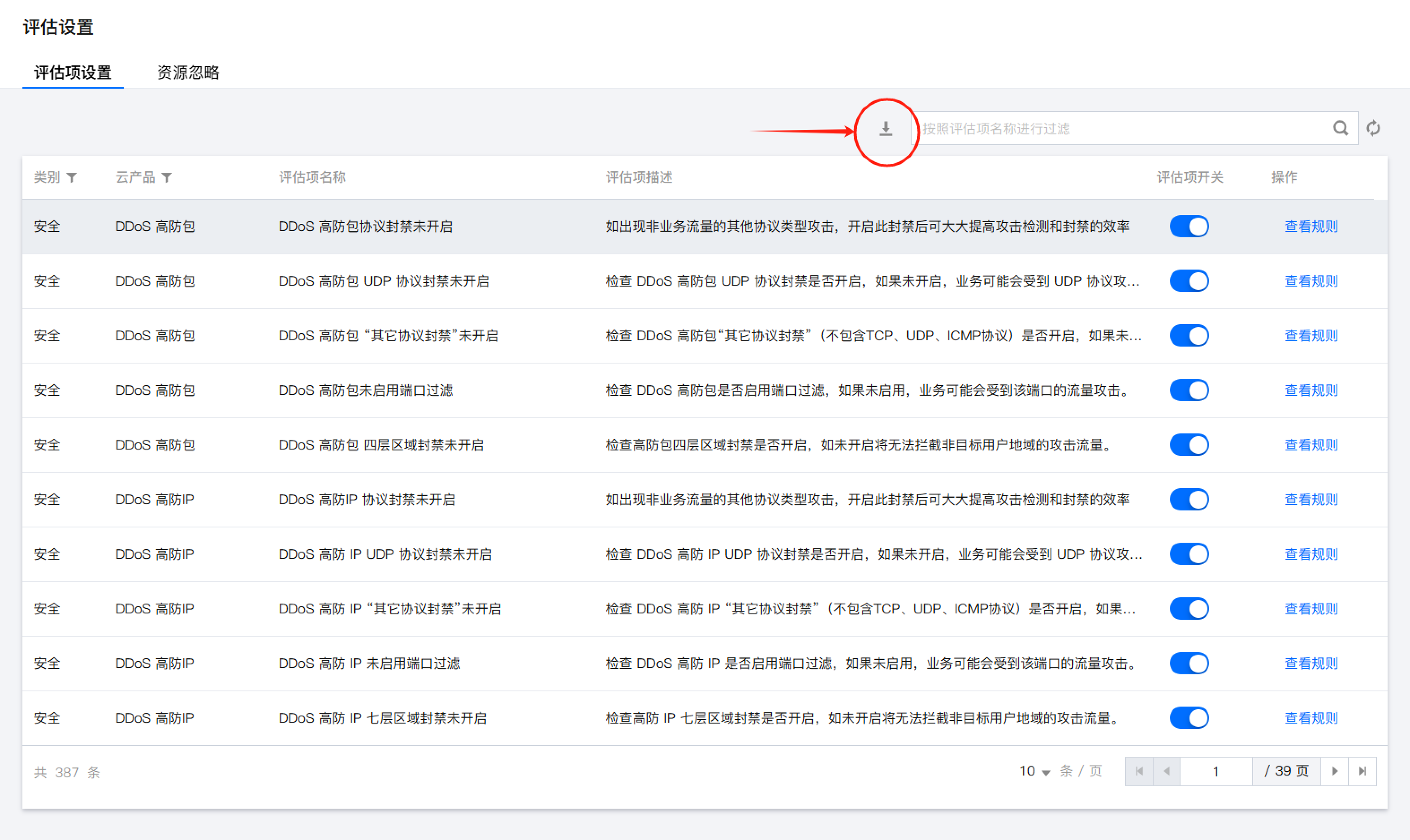 您可以单击右上角的下载按钮导出全量的巡检项。