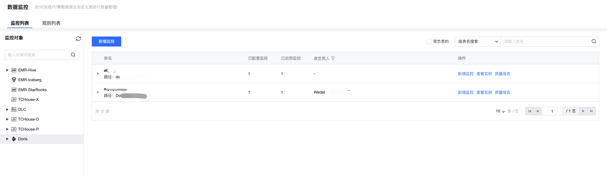 1. 单击数据质量模块,进入 数据监控 页面,选择监控列表tab,再单击新建监控按钮。