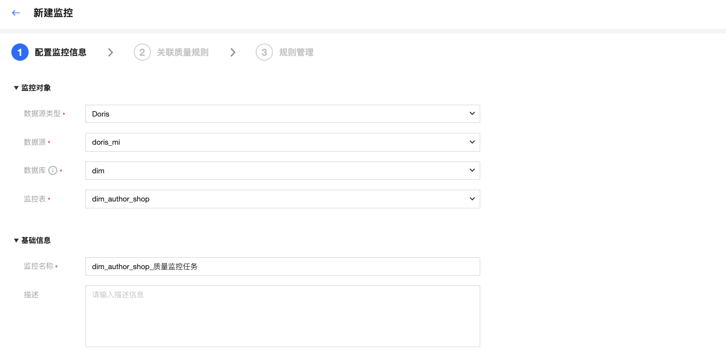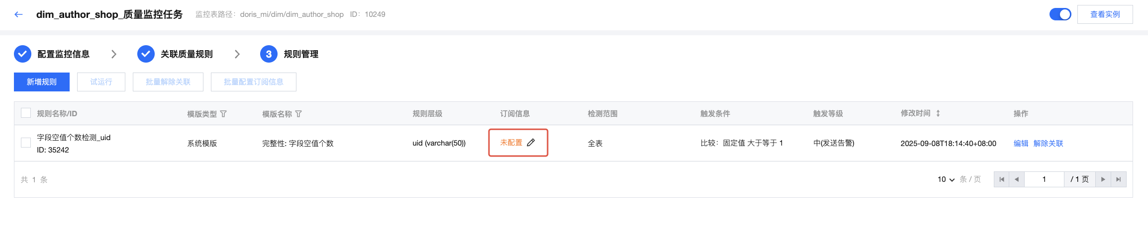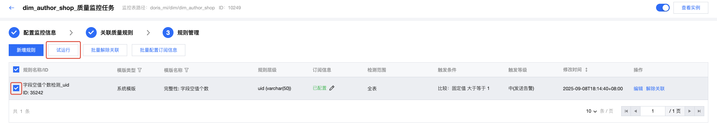当该表下之前已经创建过质量规则,此处可以直接关联到该任务。如果为空,则直接忽略这一步。