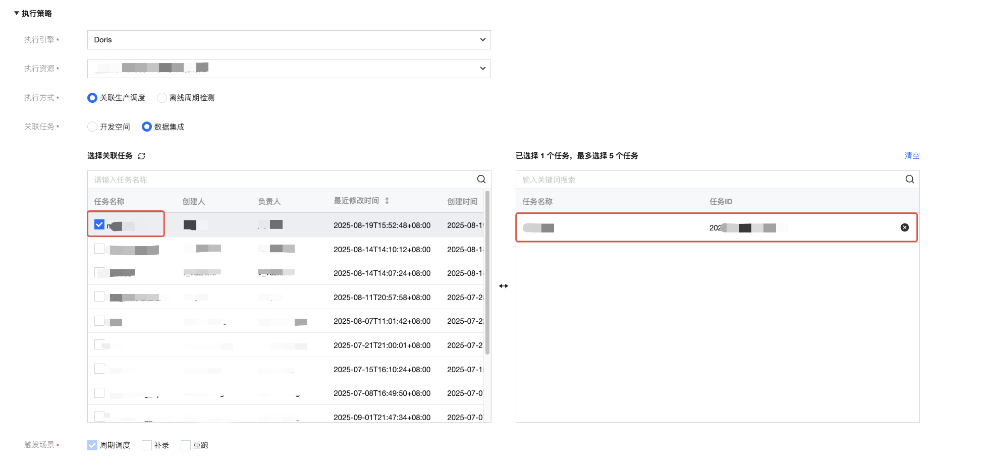 设置执行策略,当关联的数据集成任务周期调度执行完成后,就会触发执行该质量监控任务。
