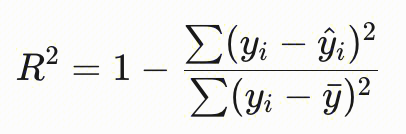 | | 决定系数r2分数 | - | r2分数介于0和1之间,越接近于1,回归拟合效果越好。yi为 label值,另一个带上三角的为predict值。 ![]() |