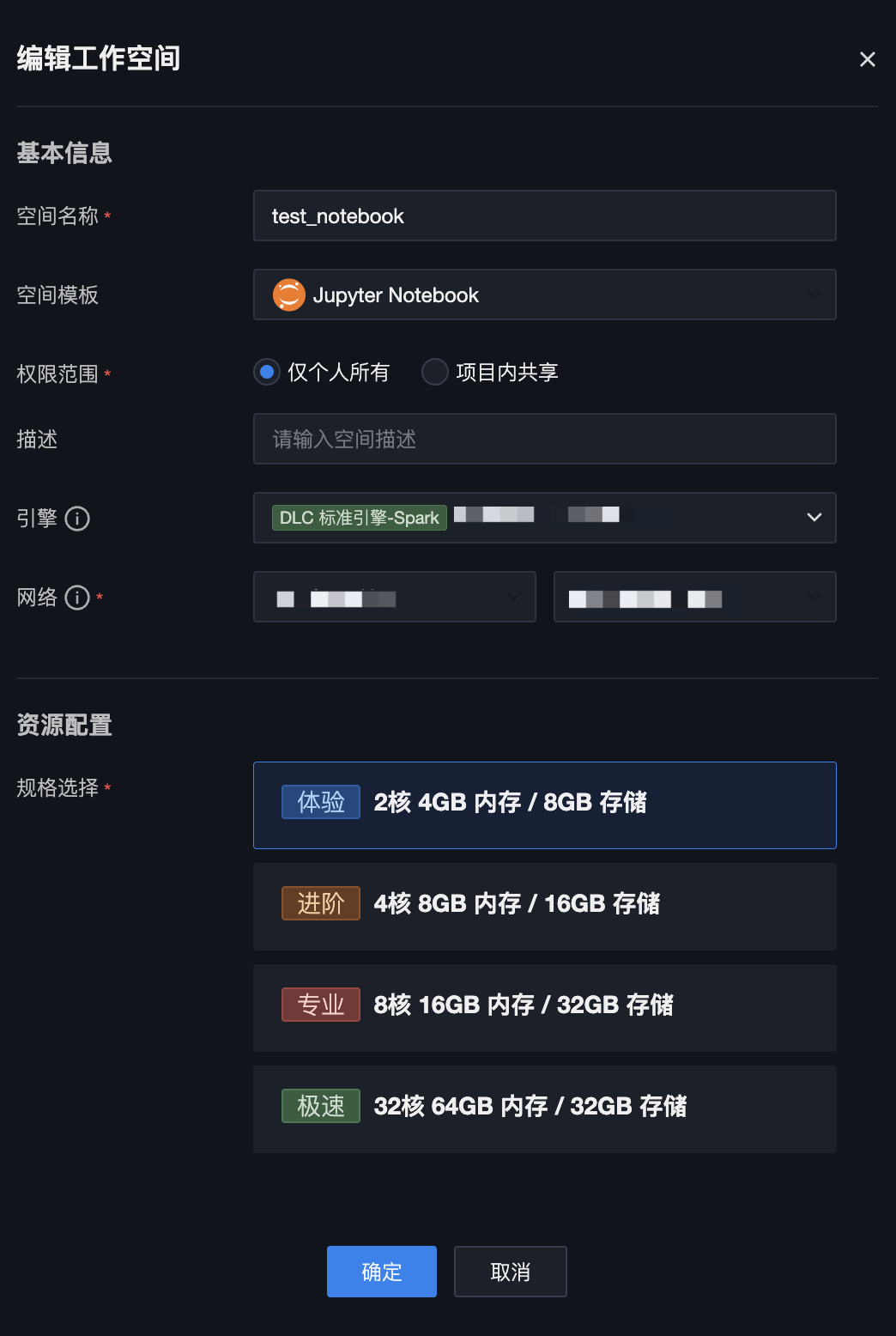 基本信息 | 配置 Notebook 工作空间的基本信息,用于创建 Notebook 工作空间实例 | |