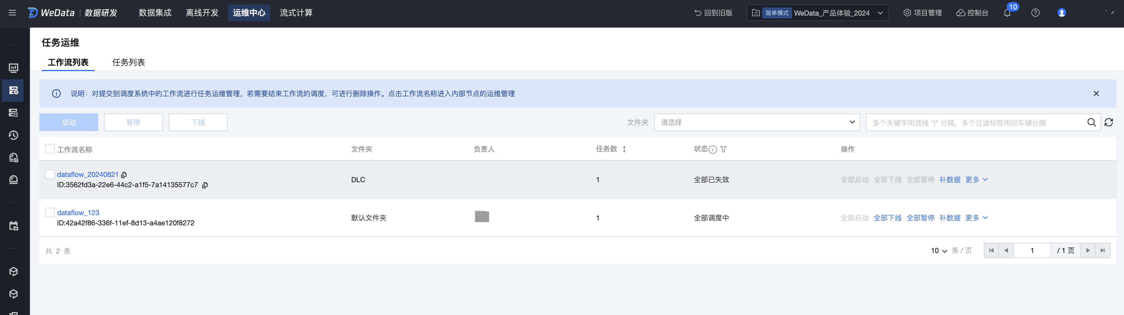 单击任务运维,可以看到提交至调度的工作流和工作流中的任务节点。