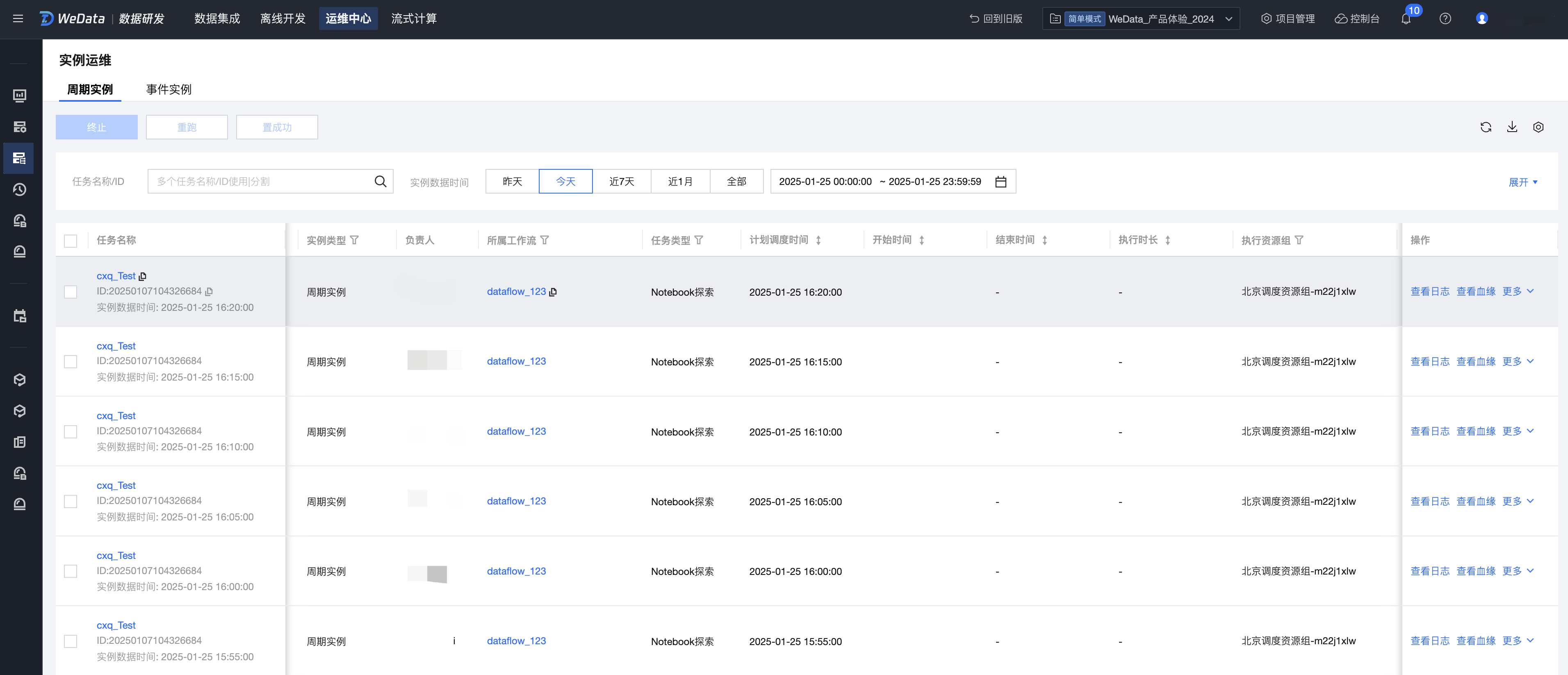 单击实例运维,可以查看上述工作流产生的每一个周期实例。