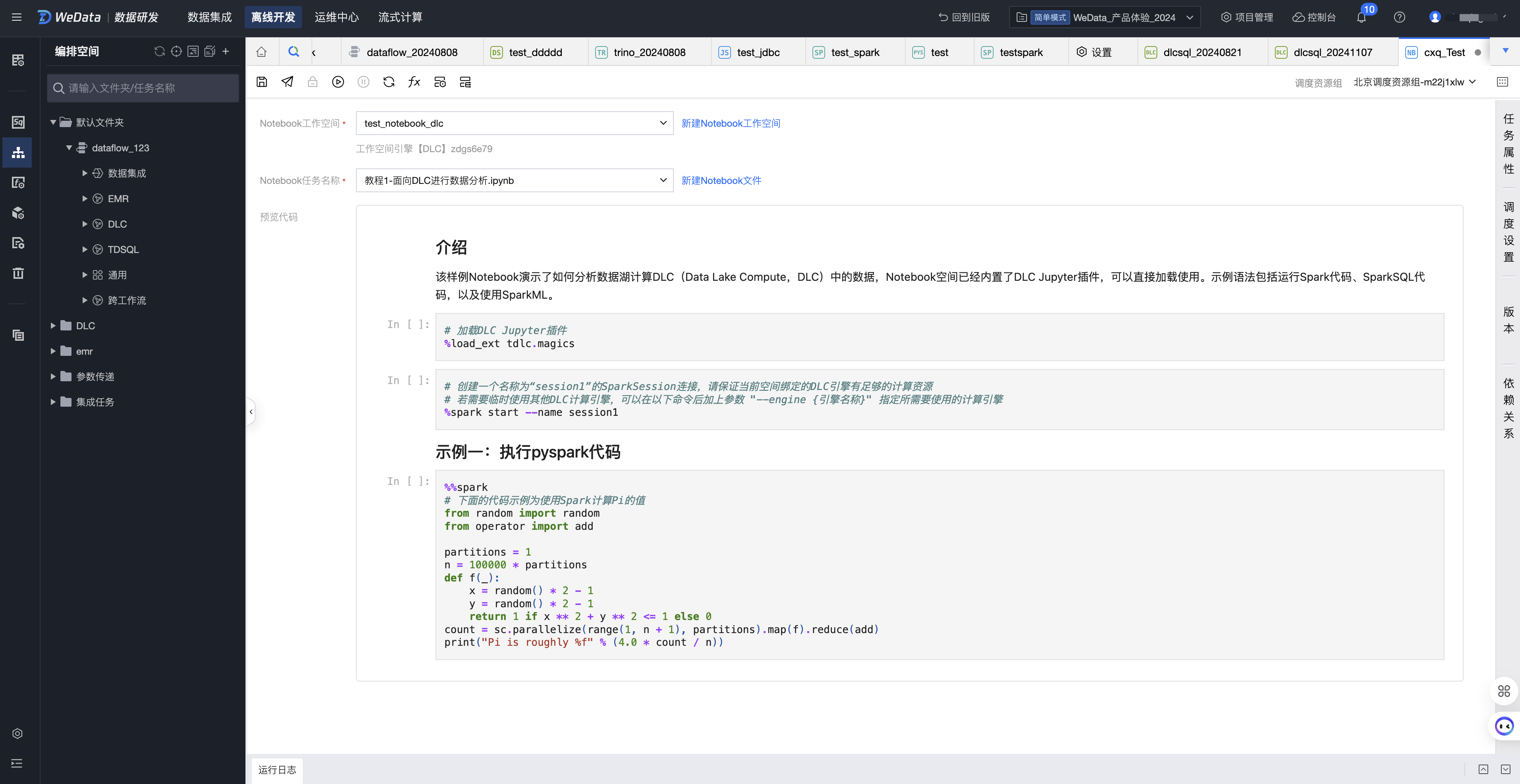 Notebook 工作空间内置了开箱即用的大数据系列教程,用户可以快速上手体验。