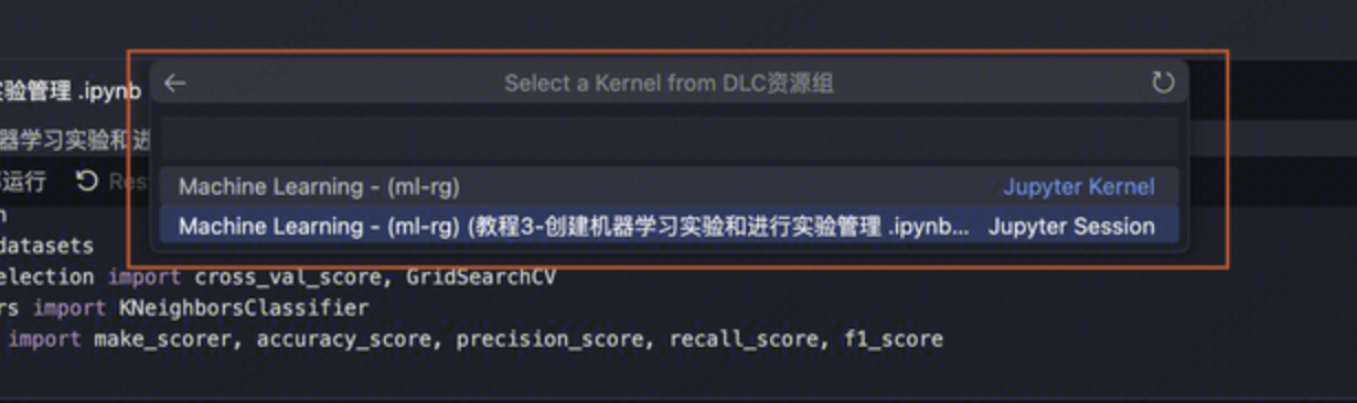如果选择了 DLC 资源组,在下一级选项中选择 DLC 数据引擎中的某个机器学习资源组实例。