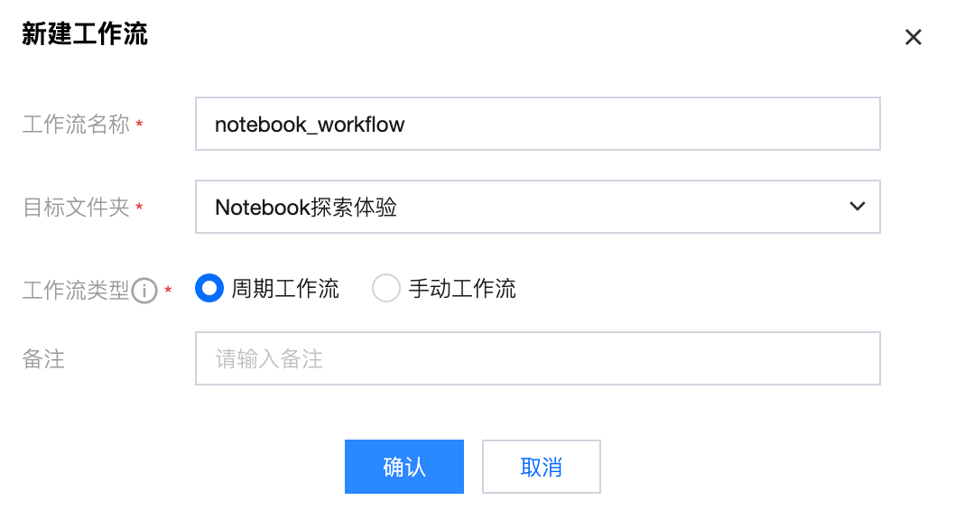 描述 | Notebook 工作空间描述,支持中文、英文、数字、特殊字符等,长度不超过255字符 | 否 |