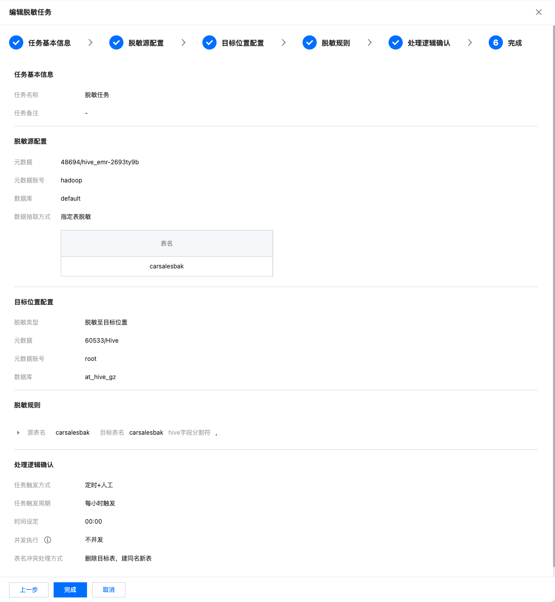 步骤五:配置脱敏任务触发规则