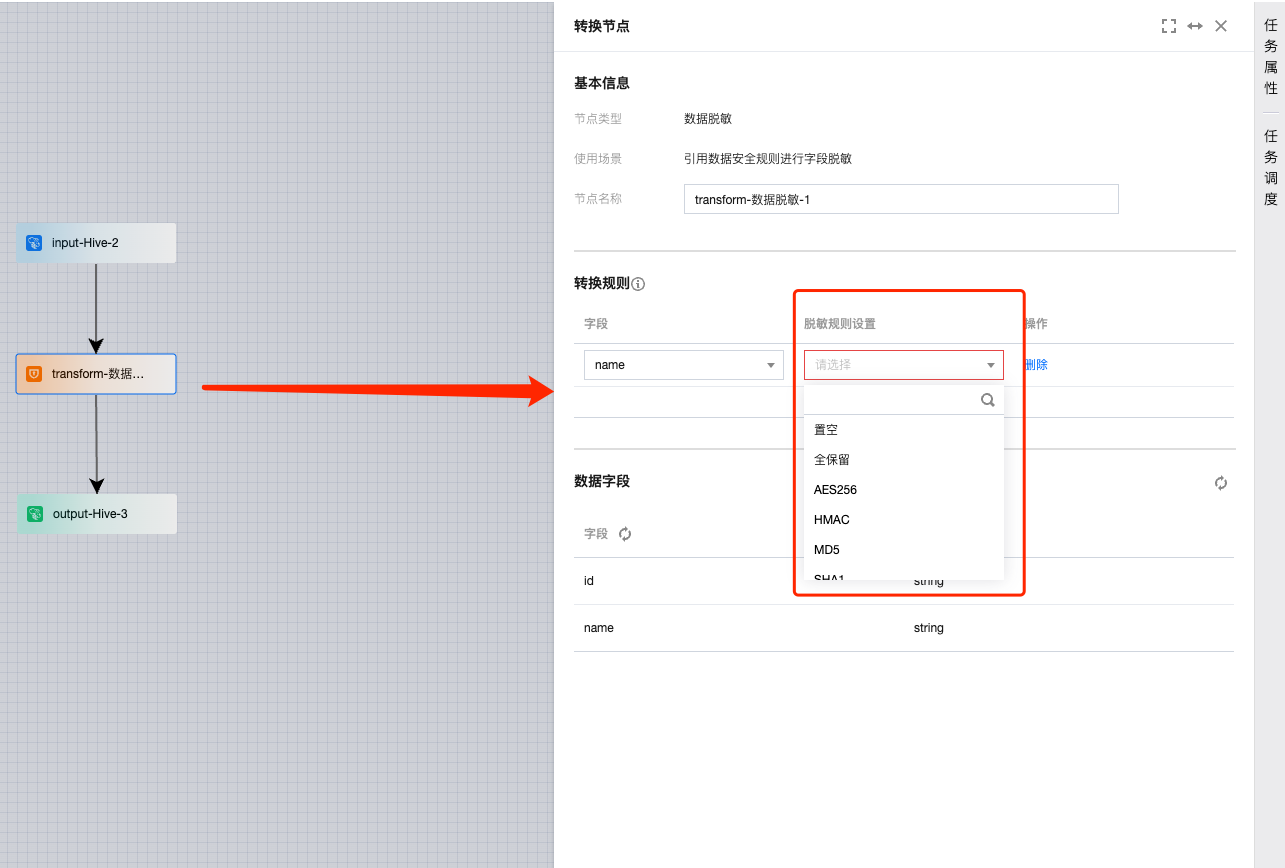步骤二:配置数据脱敏节点