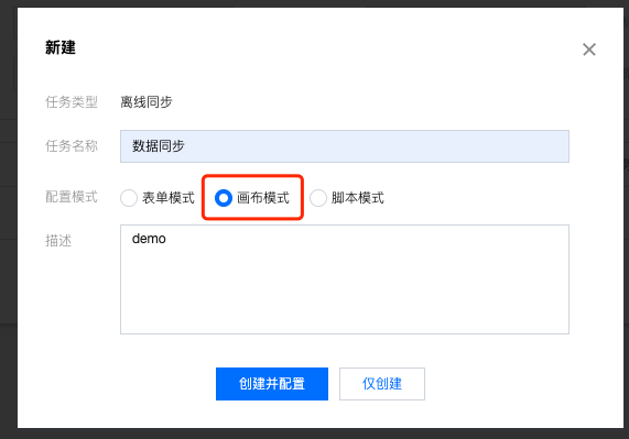 步骤一:新建离线同步(当前只有“画布模式”支持脱敏配置)