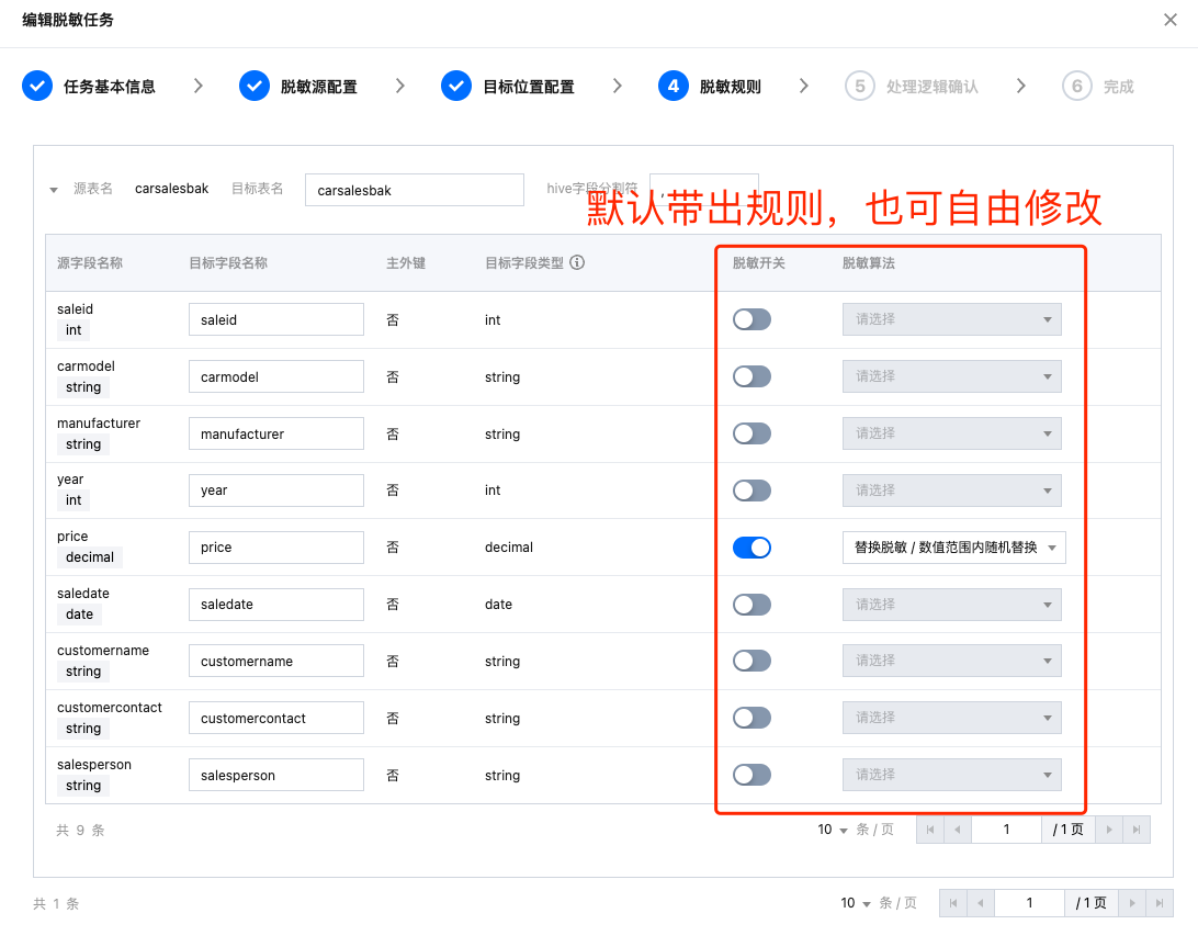 步骤四:脱敏规则