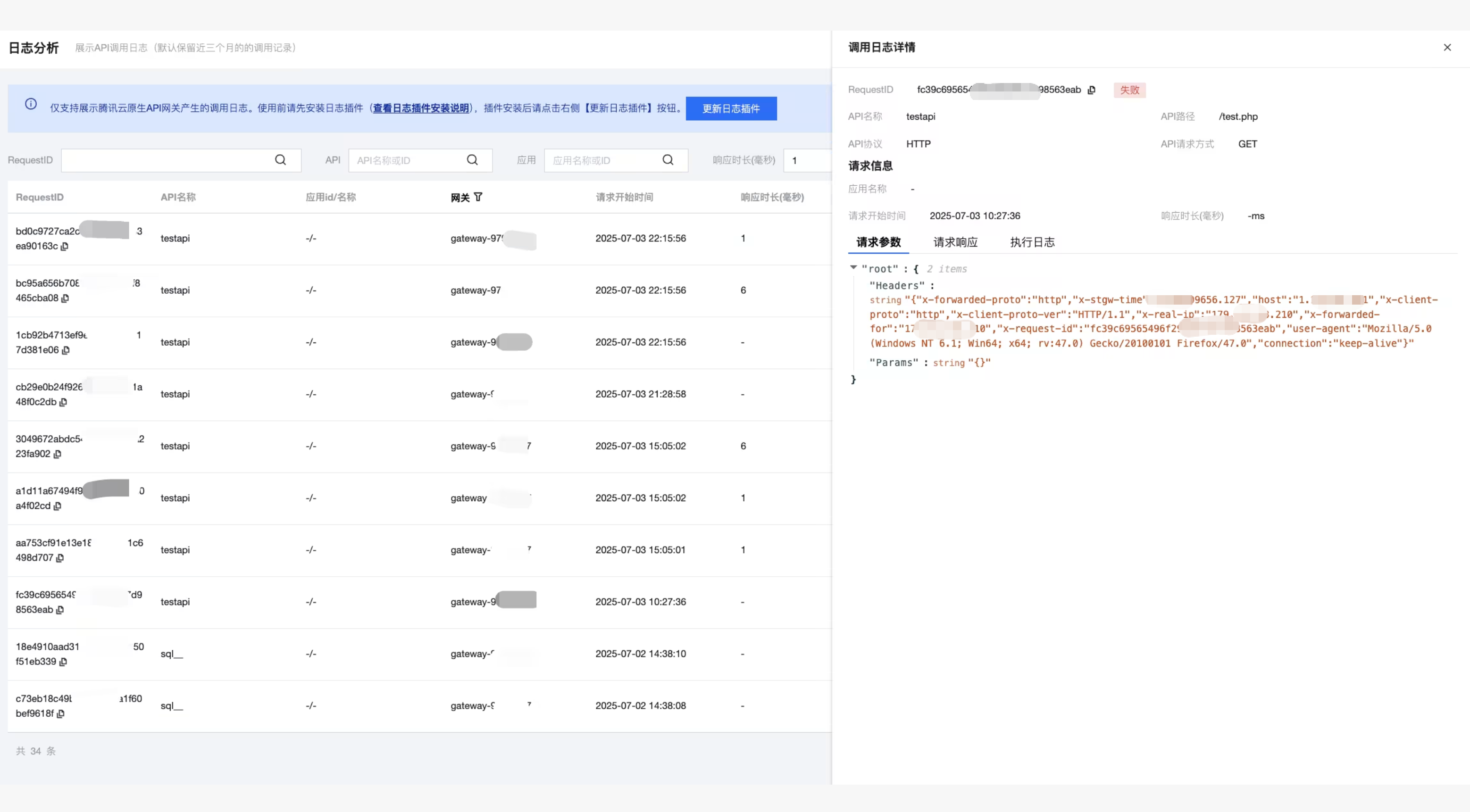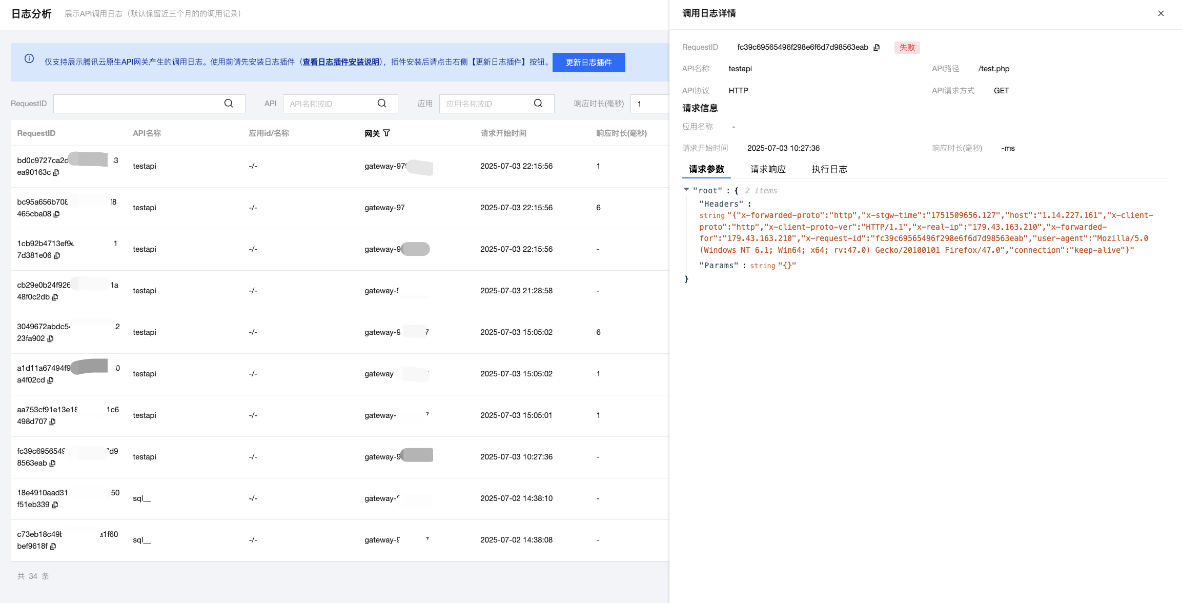 您可在日志列表,查看日志详情,包含请求参数和请求响应。
