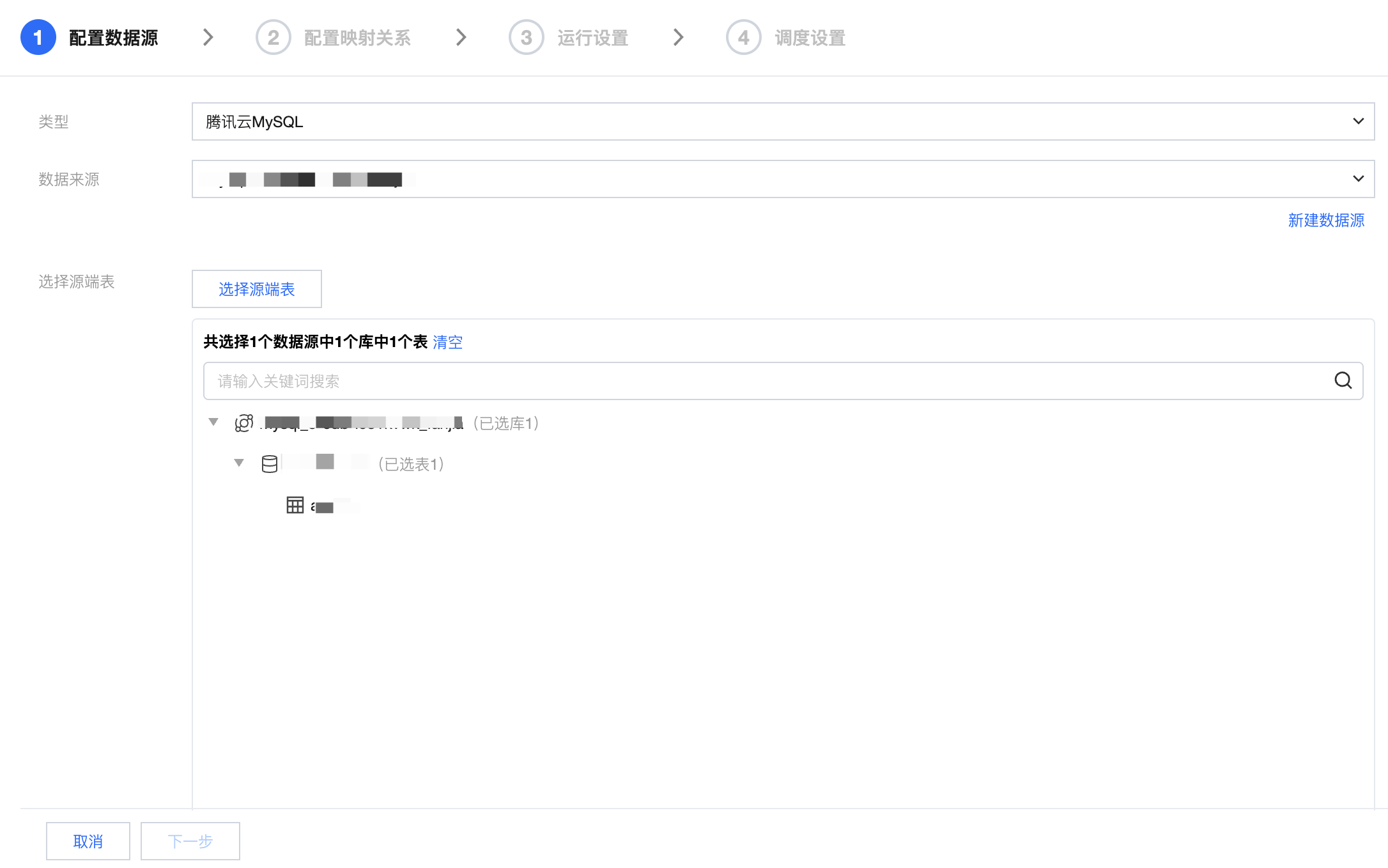 选择源端表 | 选择来源库、表。 注意: 来源表的单次批量任务支持的最大数量为500张表 |