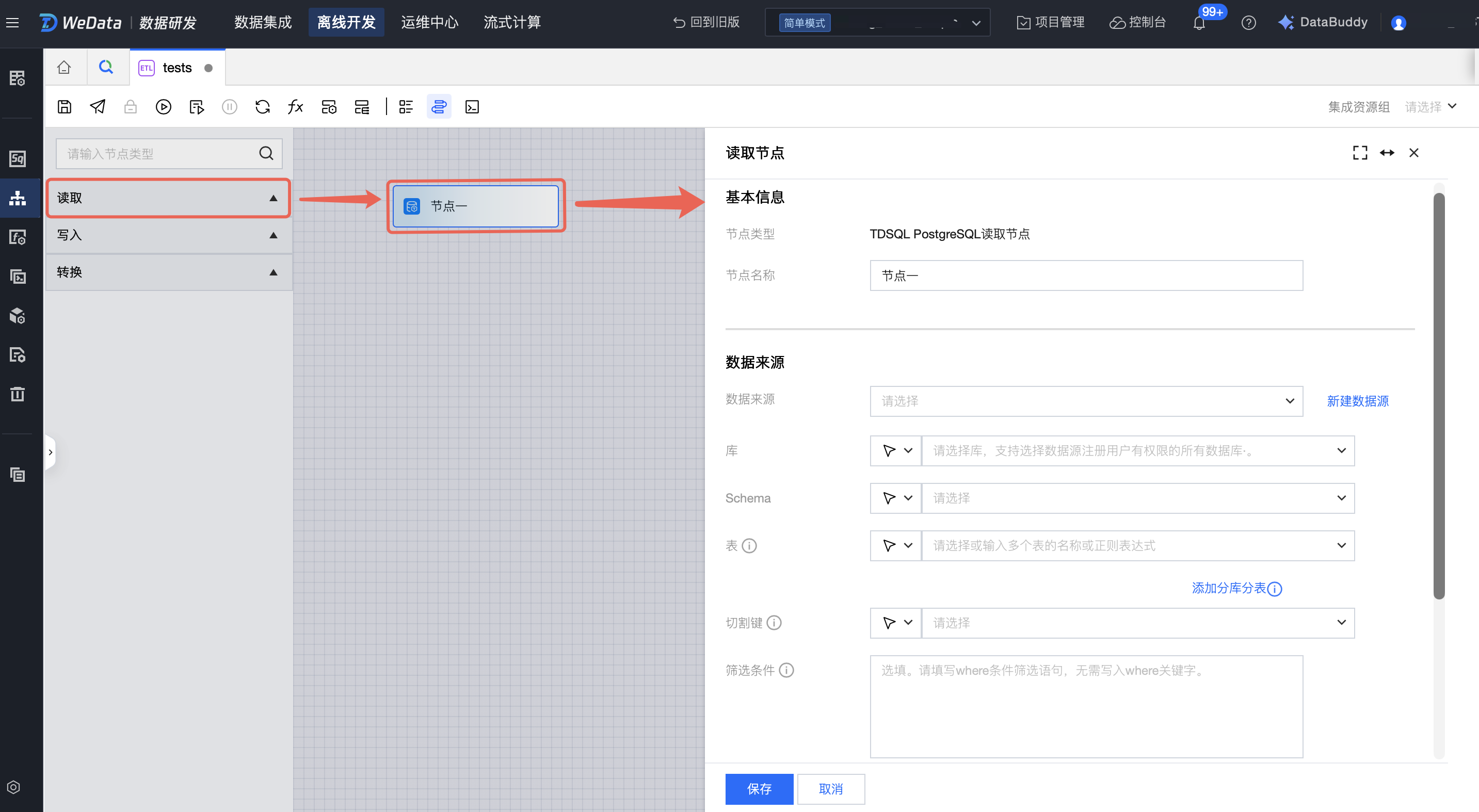 步骤二:数据节点配置(画布模式)