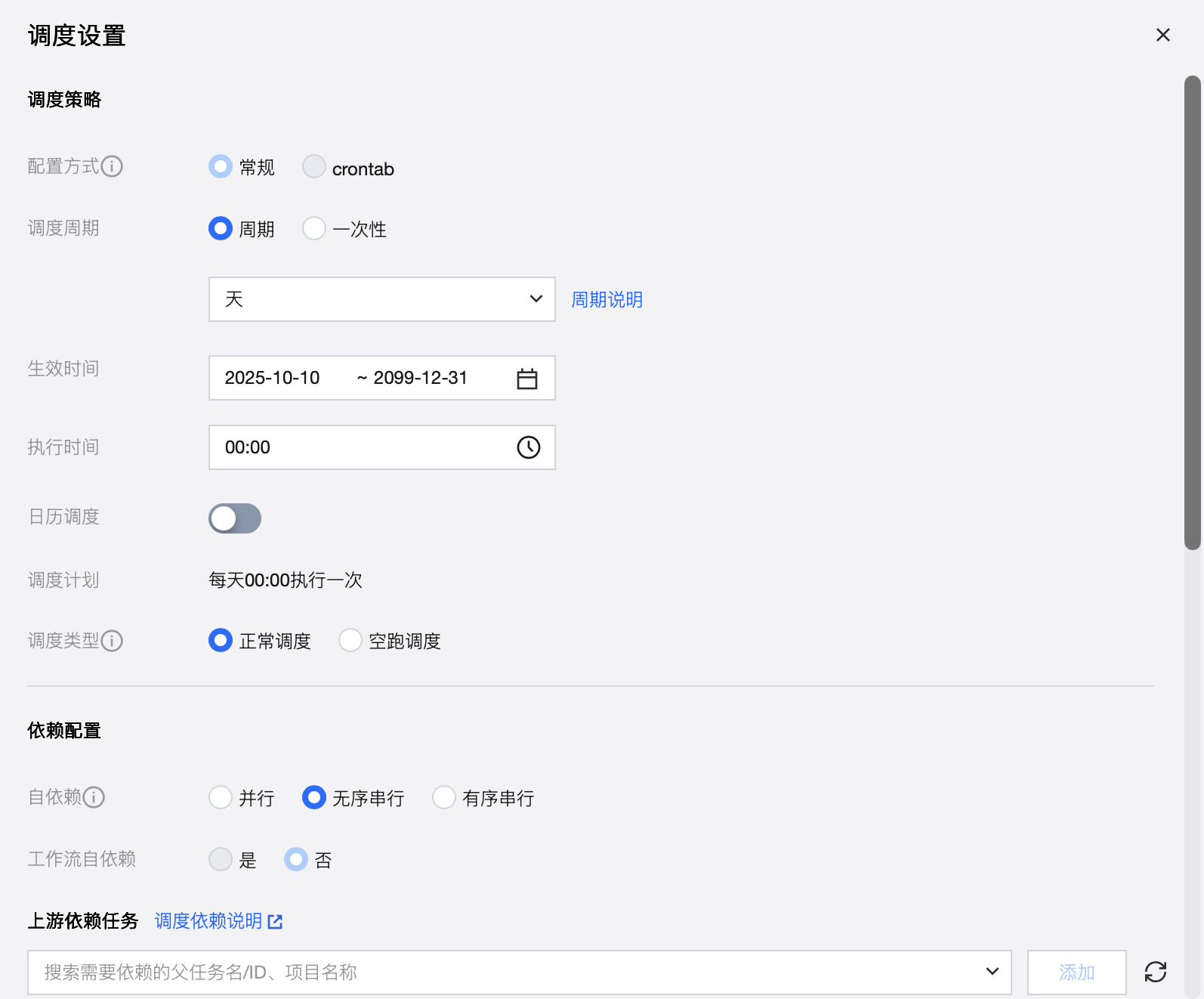 生效时间 | 调度时间配置的有效时间段,系统会在该时间范围内按照时间配置自动调度,超过有效期将不会再自动调度。 |