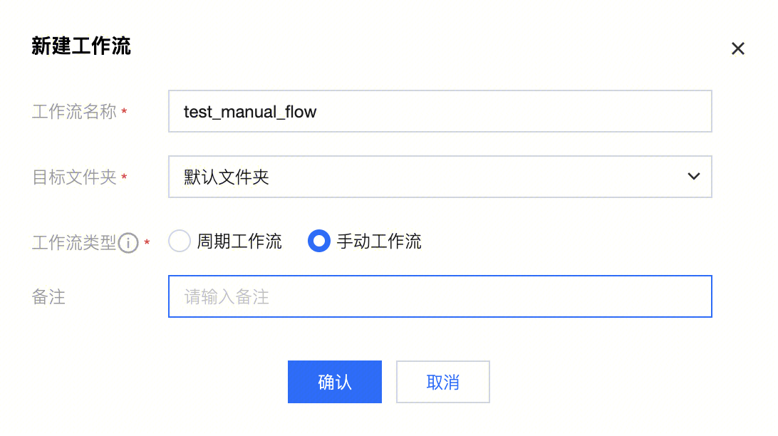 手动工作流通常用于不需要任务周期调度,在需要起调的时候,通过产品或接口手动触发的方式触发执行的场景。