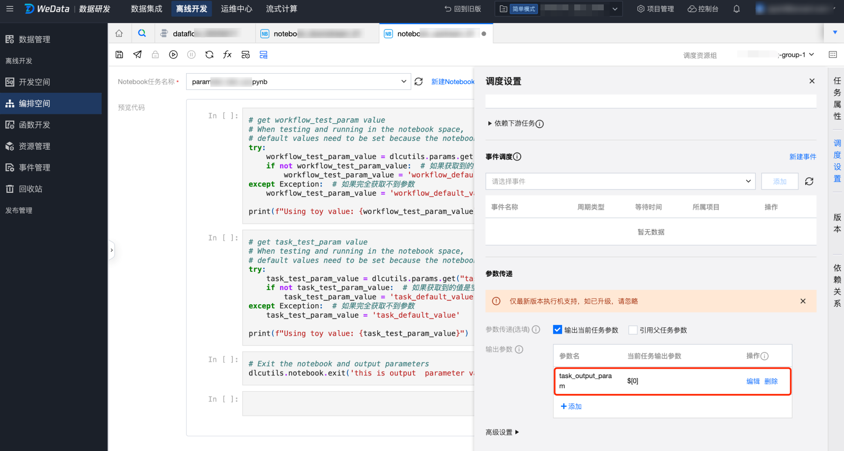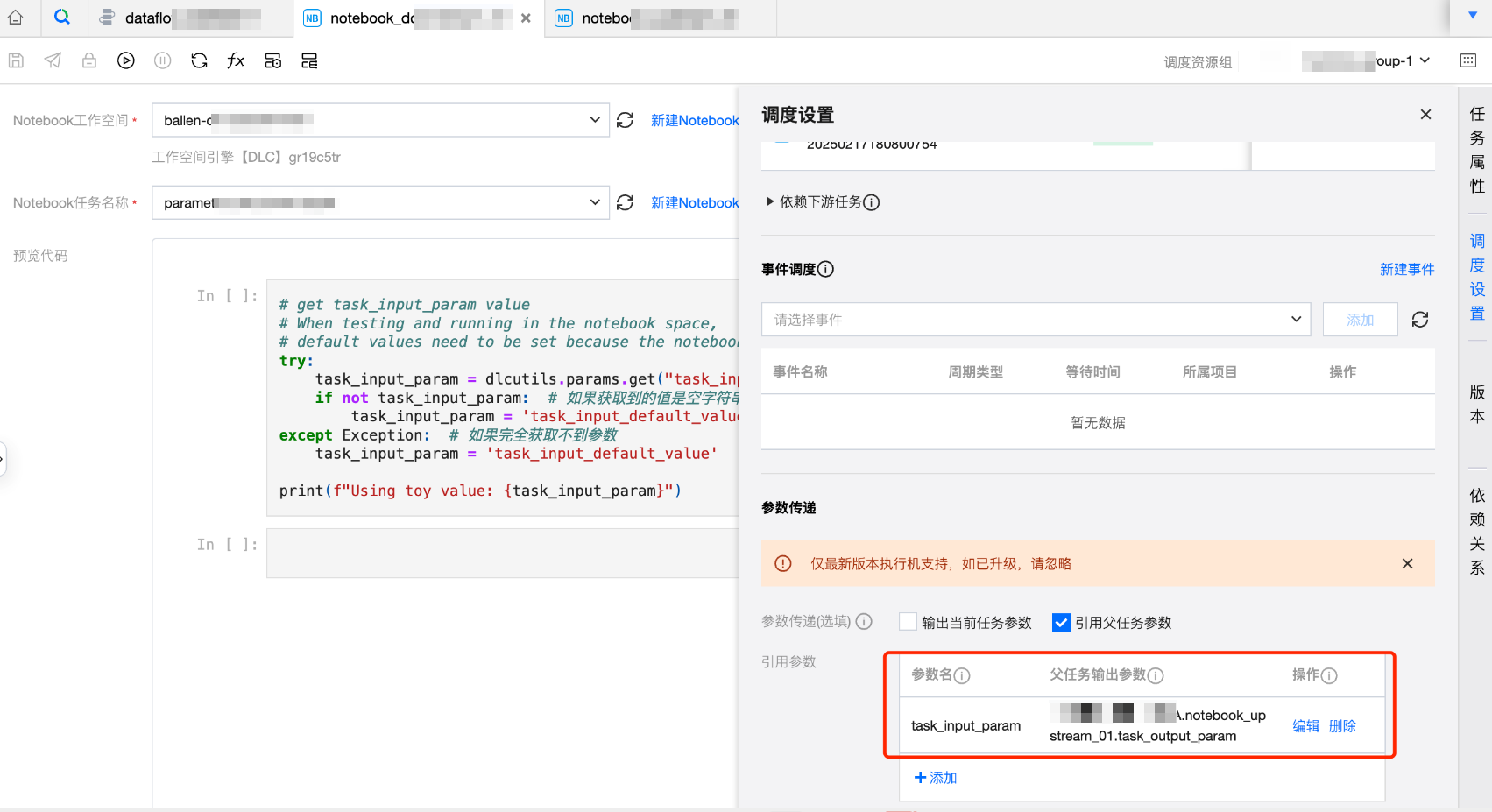 在 Notebook 中使用工作流参数或者任务参数