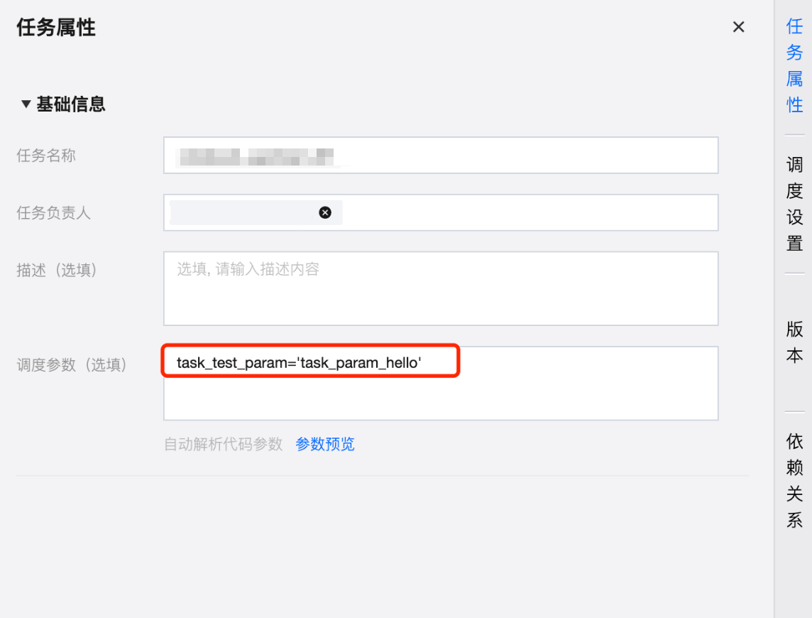 任务参数可在任务的任务属性中进行配置。