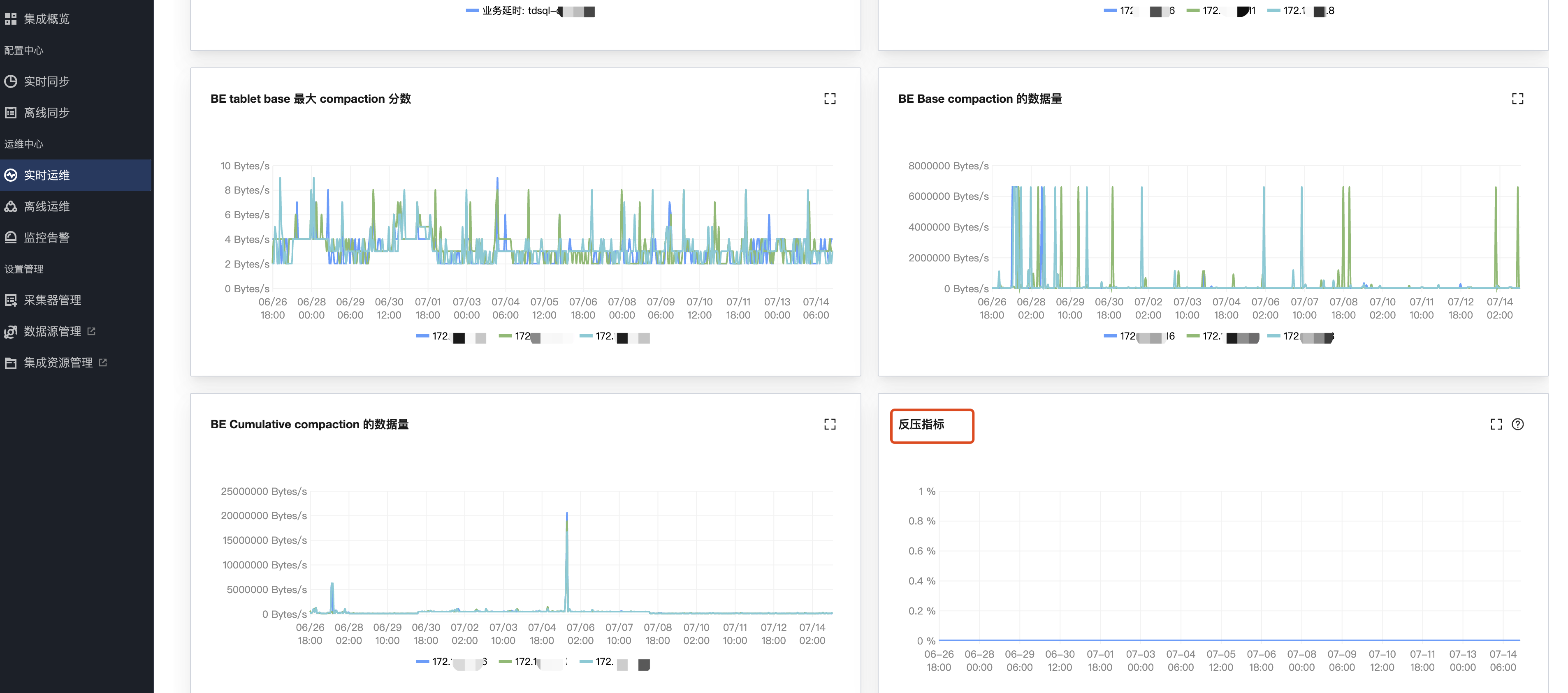查看反压指标,如果指标超过60%说明目标端有瓶颈。可以查看目标端数据库是否负载过高,如果目标端负载过高,需要目标端数据库进行排查;如果目标端负载正常或者反压指标不超过60%,则进一步查看任务的资源指标是否负载较高,如果负载较高则需要调整 TM 的并发数或者规格。