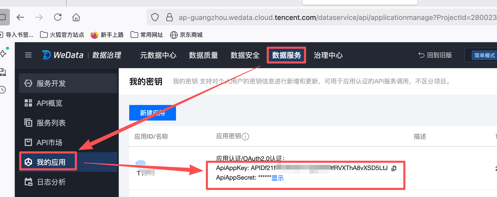 身份认证:使用“WeData-数据服务-我的应用”AKSK 进行身份验证
