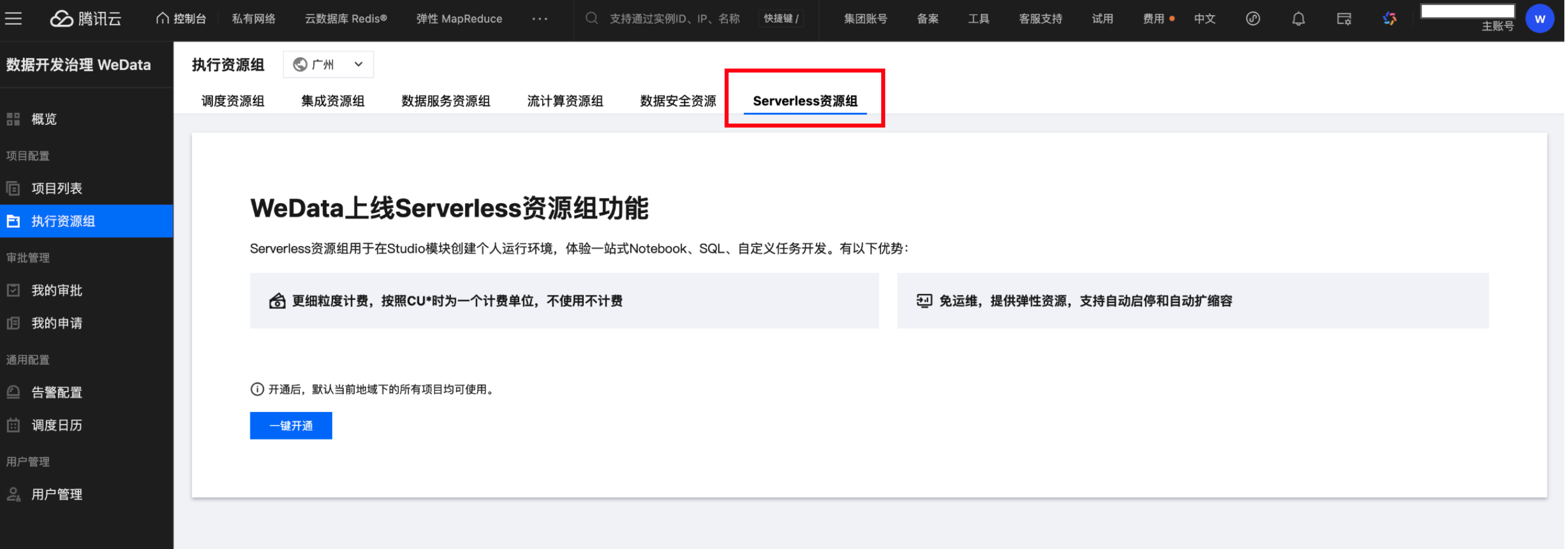 每个主账号+地域,默认仅支持一个 Serverless 资源组。