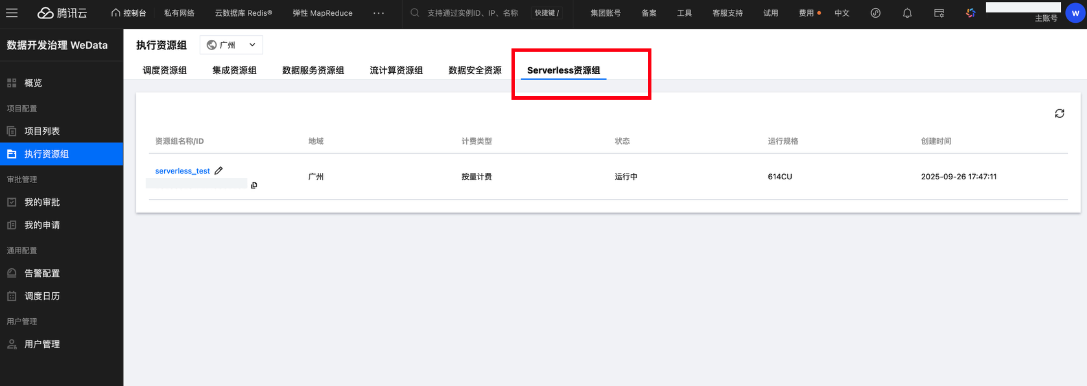 运行中 | Serverless 资源组已成功创建,可正常使用 |
