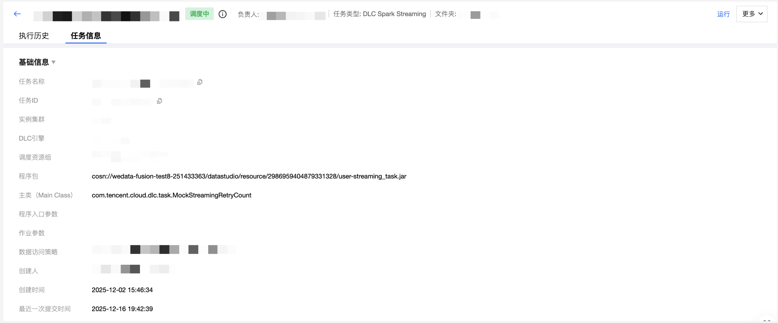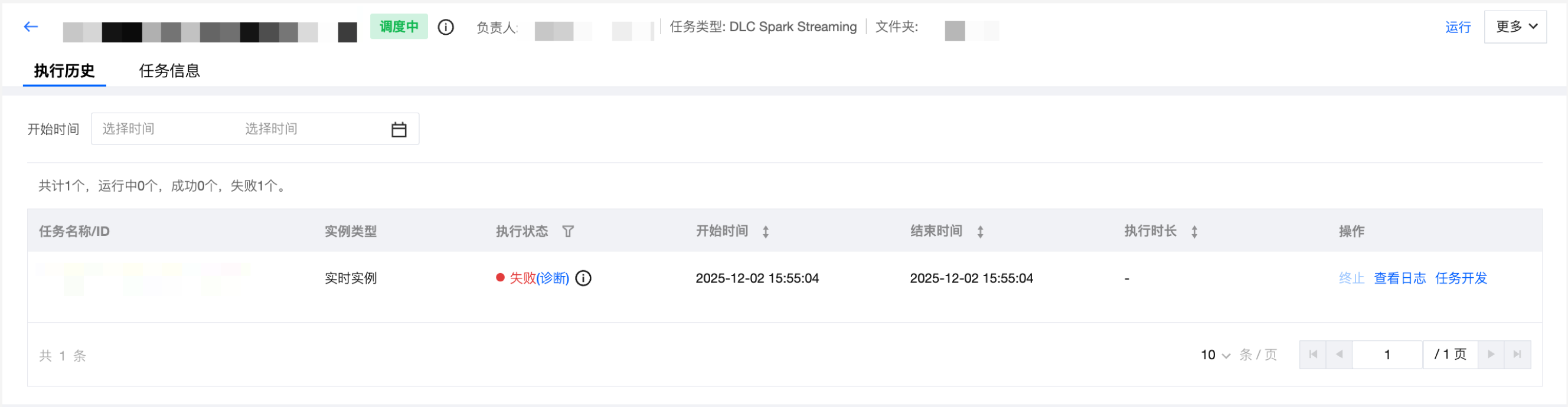 实时任务详情是实时任务信息和操作的合集,包含执行历史和任务信息2个tab。