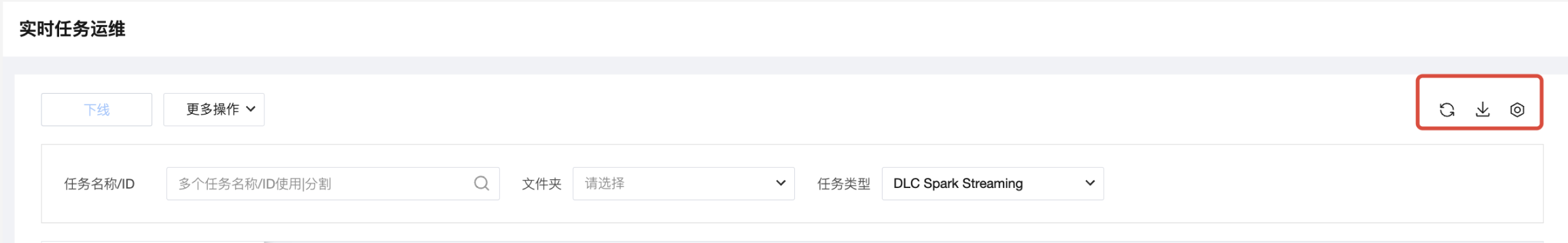 按任务类型 | 支持按任务类型进行筛选,当前实时任务列表仅包含DLC Spark Streaming任务,默认选中该任务类型。 |