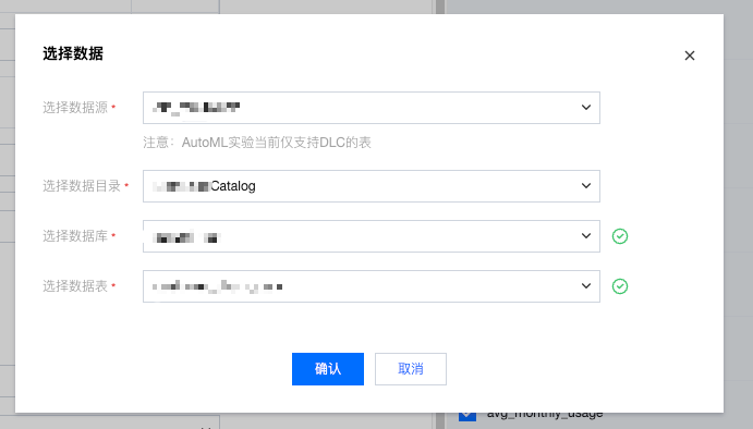 单击 “浏览数据”,在弹窗中选择数据所在的 “数据目录→数据库→数据表”(仅显示 DLC 引擎下的数据)。