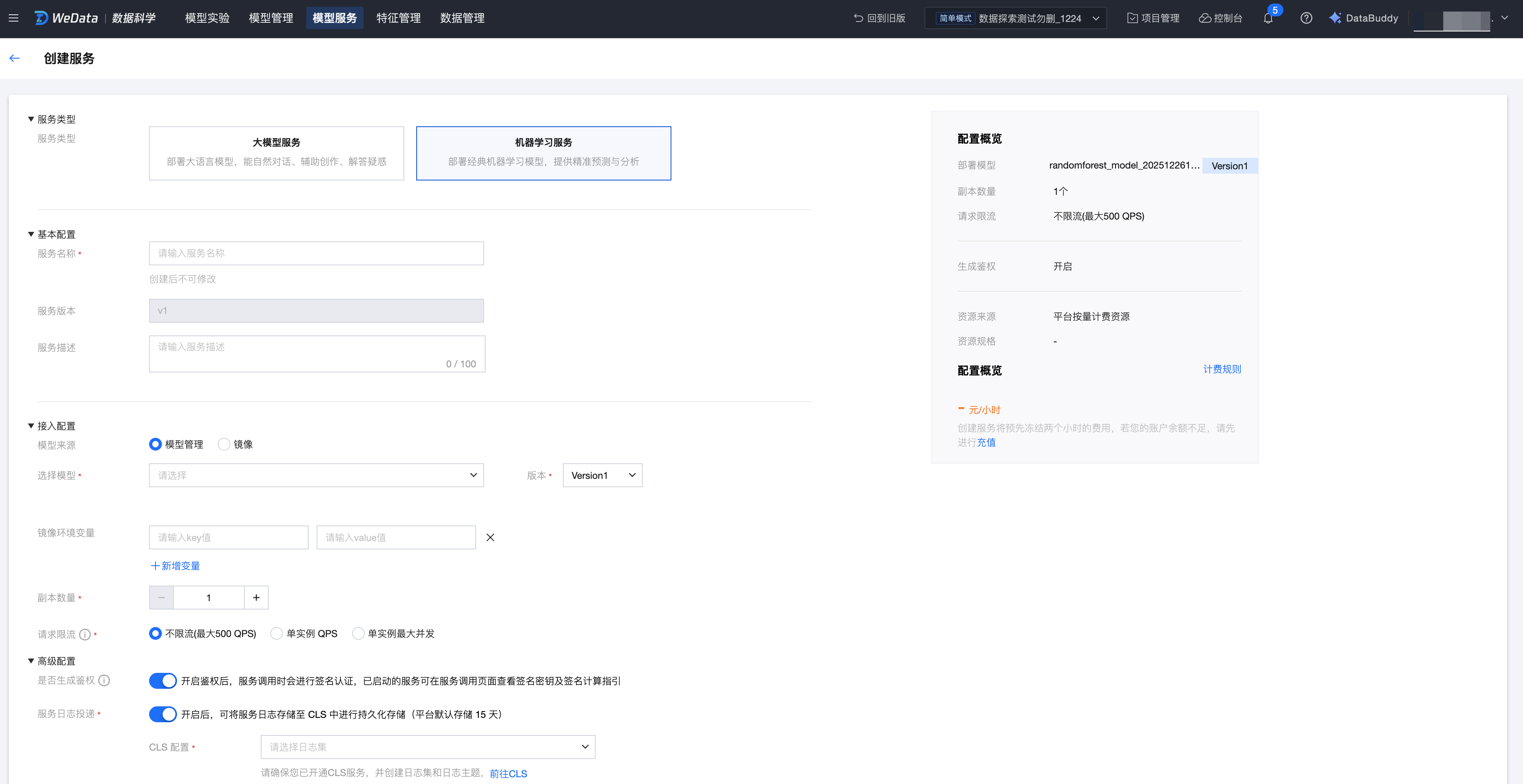 2. 进入模型服务创建流程。