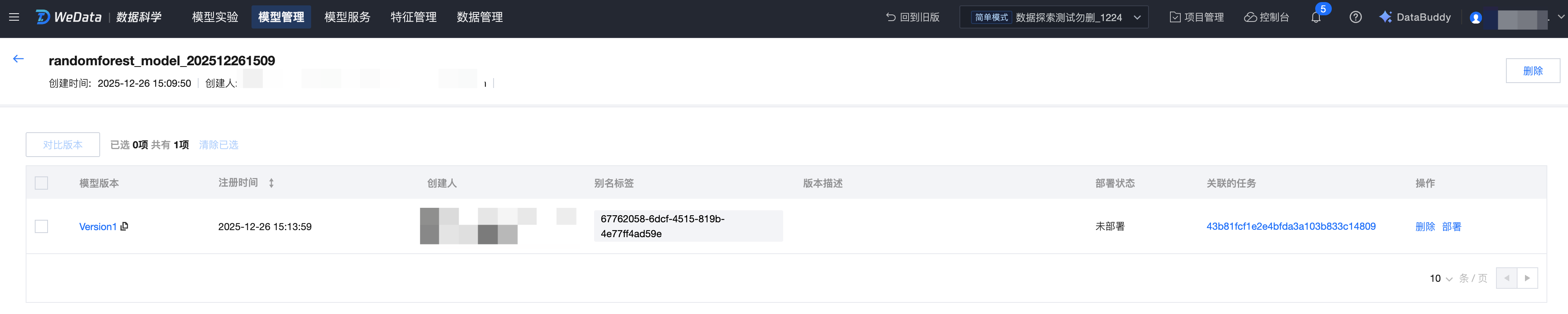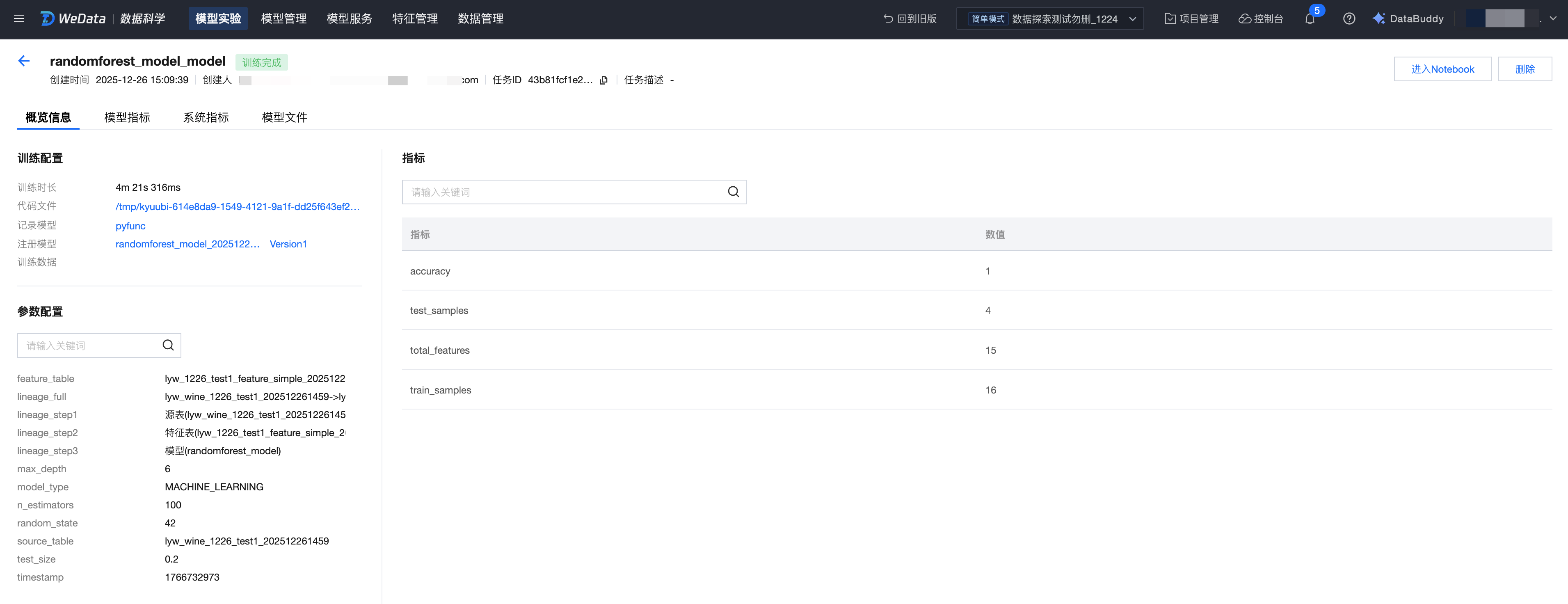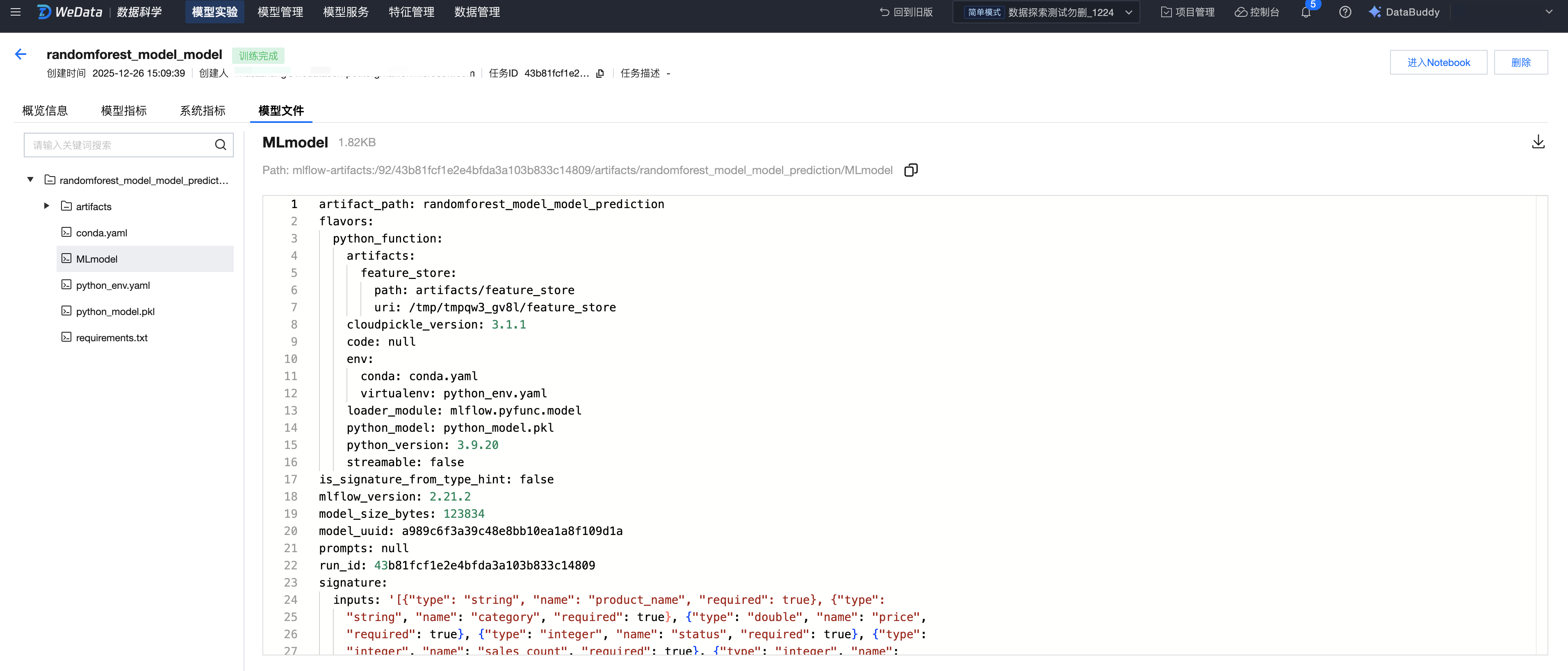 WeData 的模型管理依托于 MLflow 和 Catalog,提供了完整的机器学习模型生命周期管理能力,包括: