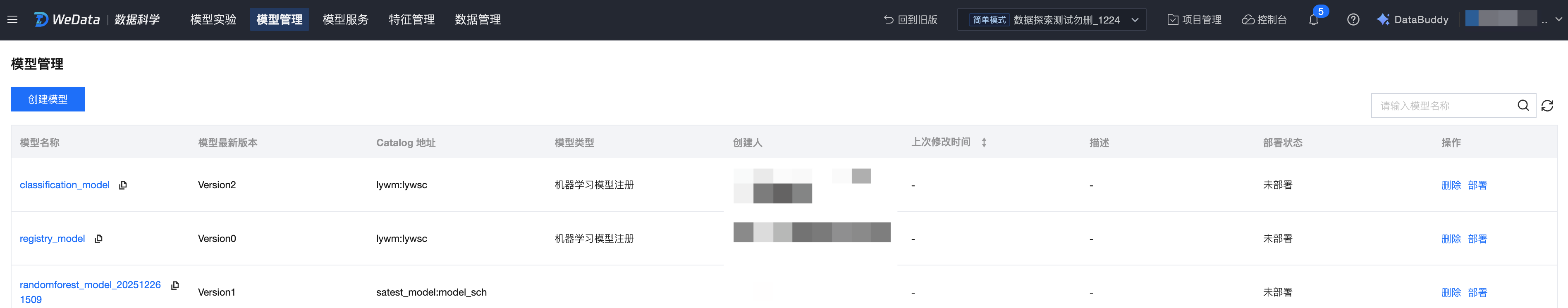 面注册有两个入口:方式一:直接在模型管理页面“创建模型”。