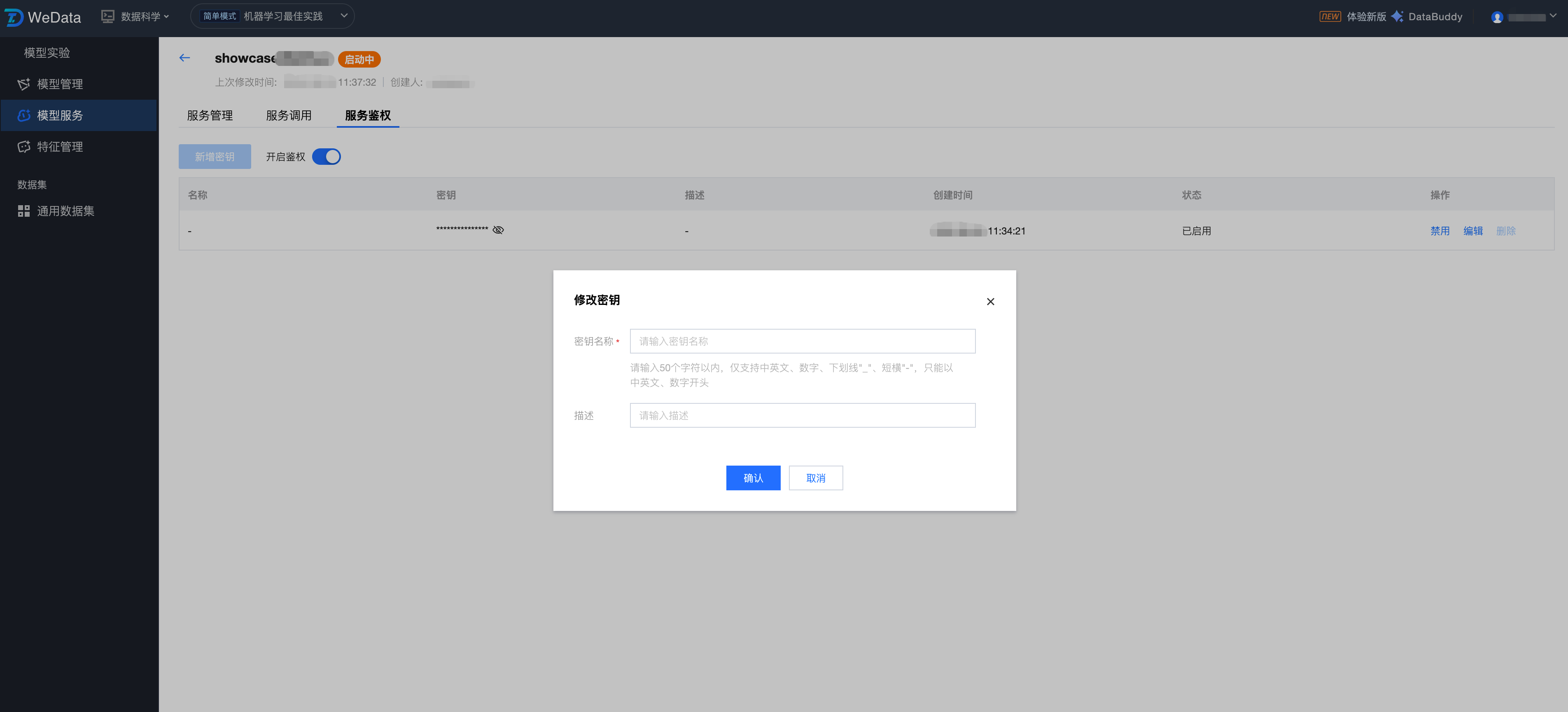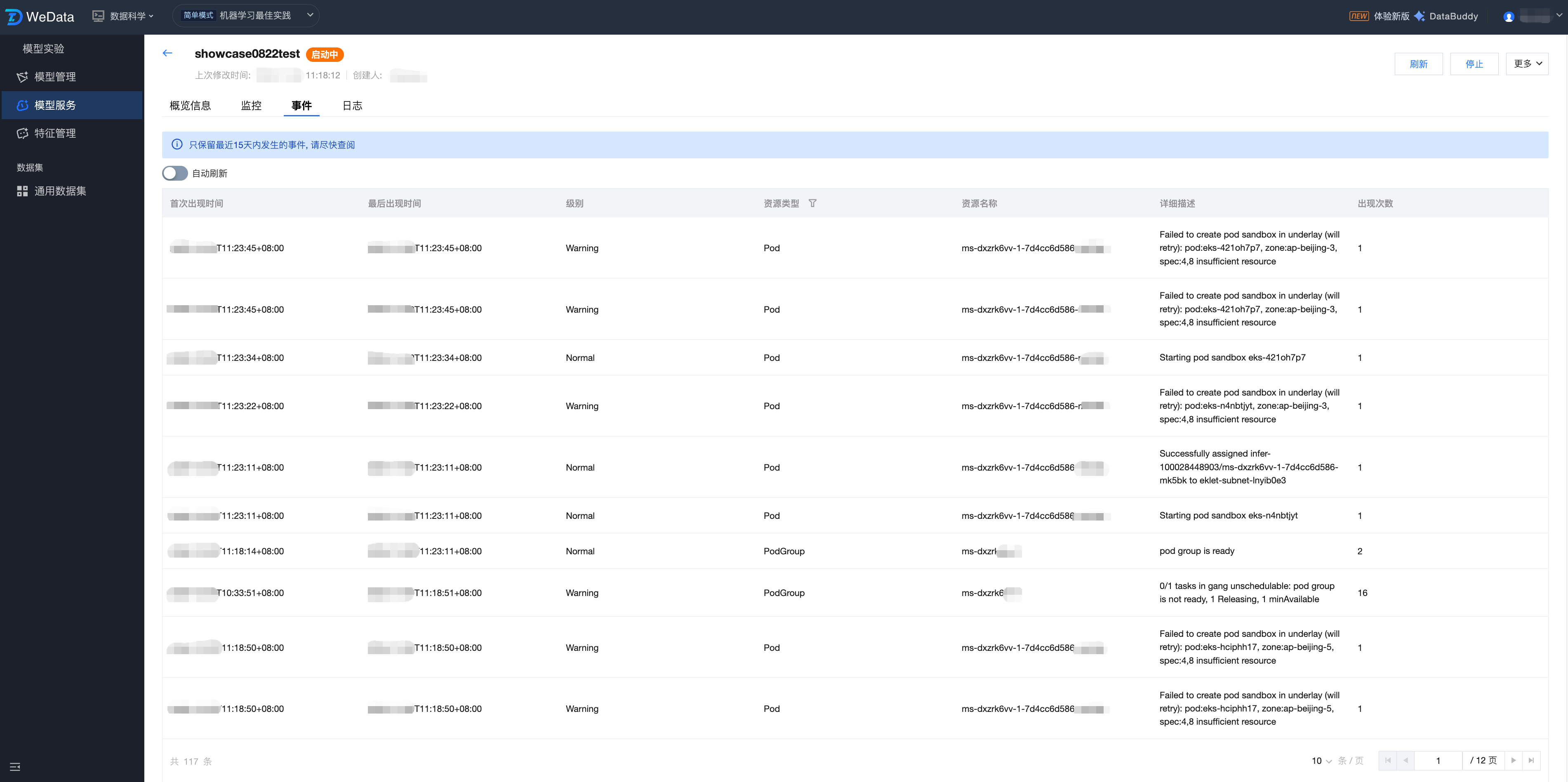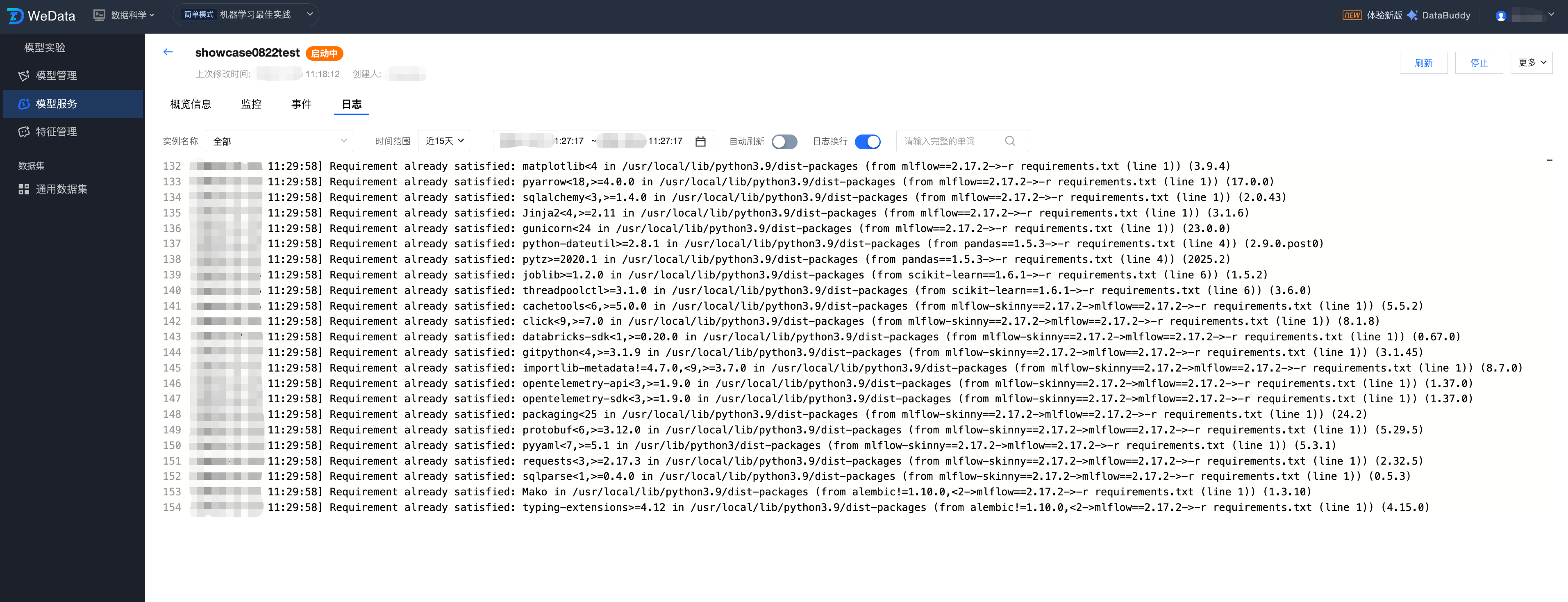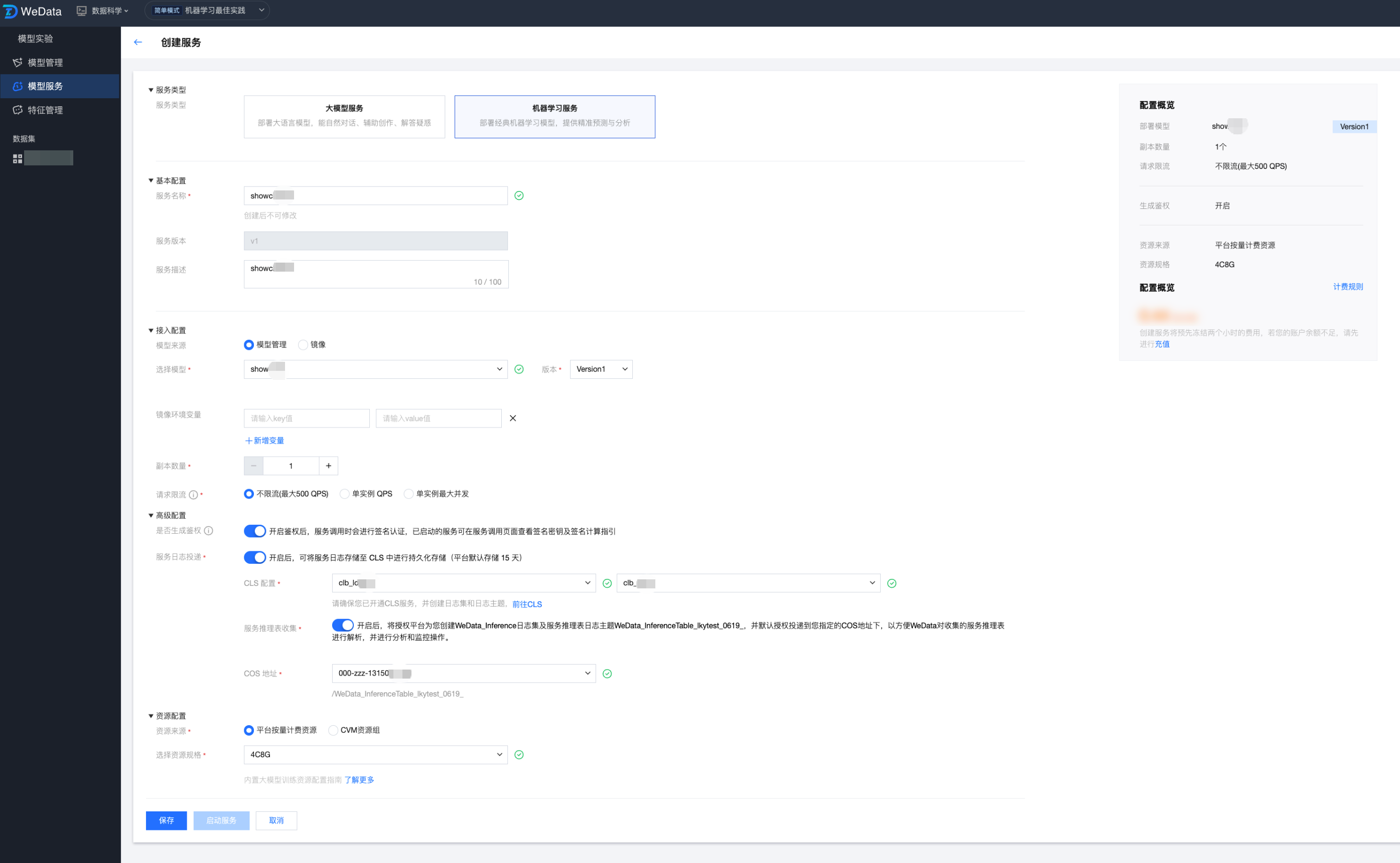 WeData 的模型服务提供新建服务、服务监控、服务调试等功能,可以更高效地管理服务,并确保它们在生产环境中的有效性。