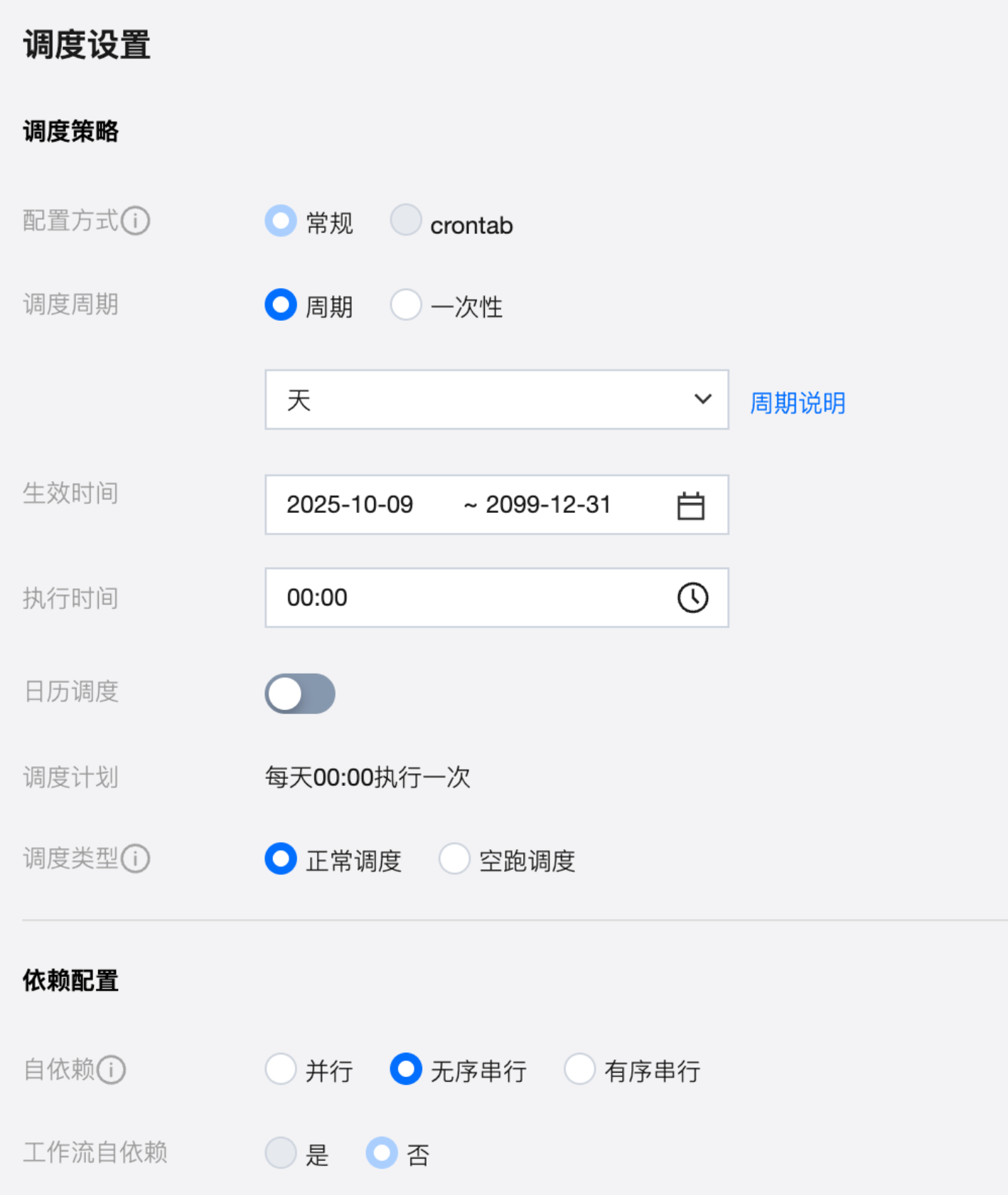 调试好任务,确保手动执行成功并写入处理好的数据后,可以在调度设置中配置任务为定期执行,建议配置为至少一周一次,以持续监控模型质量。
