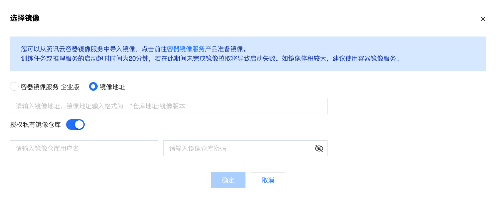 镜像地址:支持从腾讯云容器镜像服务中导入镜像。