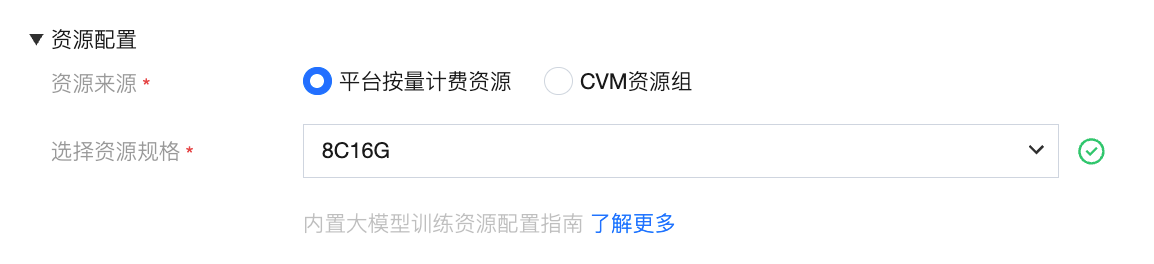 资源来源 | | 该版本运行所消耗的计算资源类型。 | 标识资源来自“平台按量计费资源”或“CVM 资源组”。 |