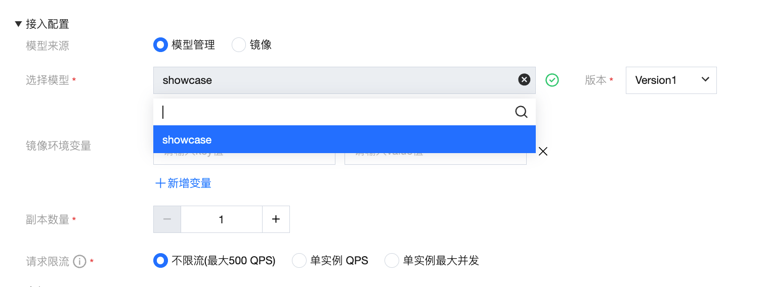 | 新增版本 | 在同一服务下部署新的模型版本。 | 实现模型的灰度发布或 A/B 测试场景,最多支持两个服务版本 |