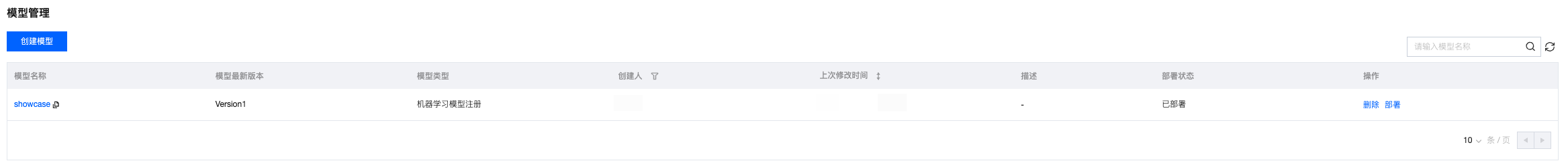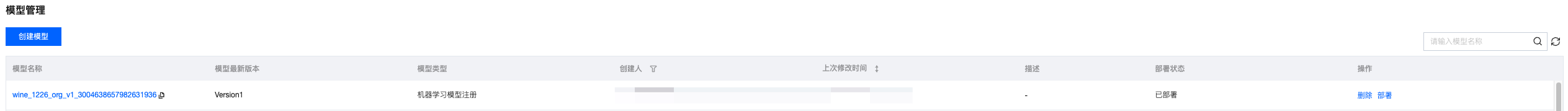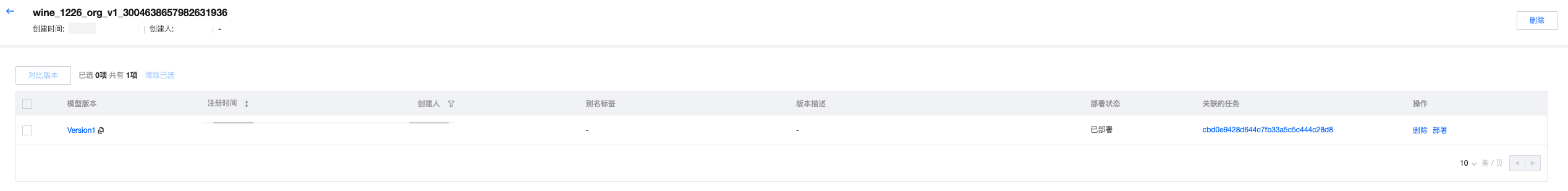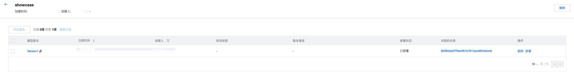 2. 单击模型名称,可以进入模型版本列表查看版本记录。