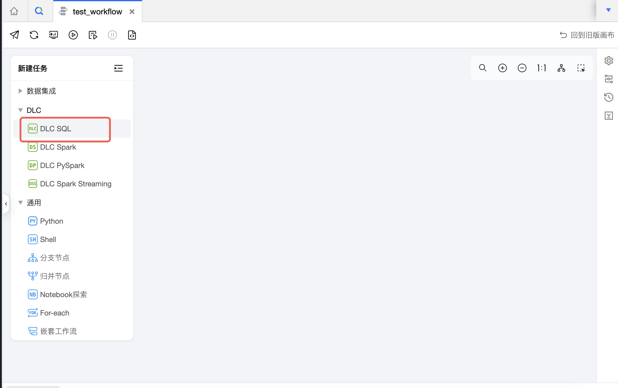 点击工作流画布-新建任务中的任务名称,即可新建对应类型的任务。