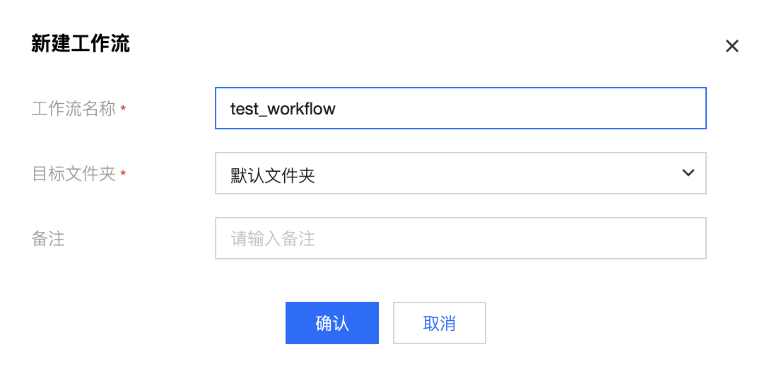 配置工作流名称,选择文件夹
