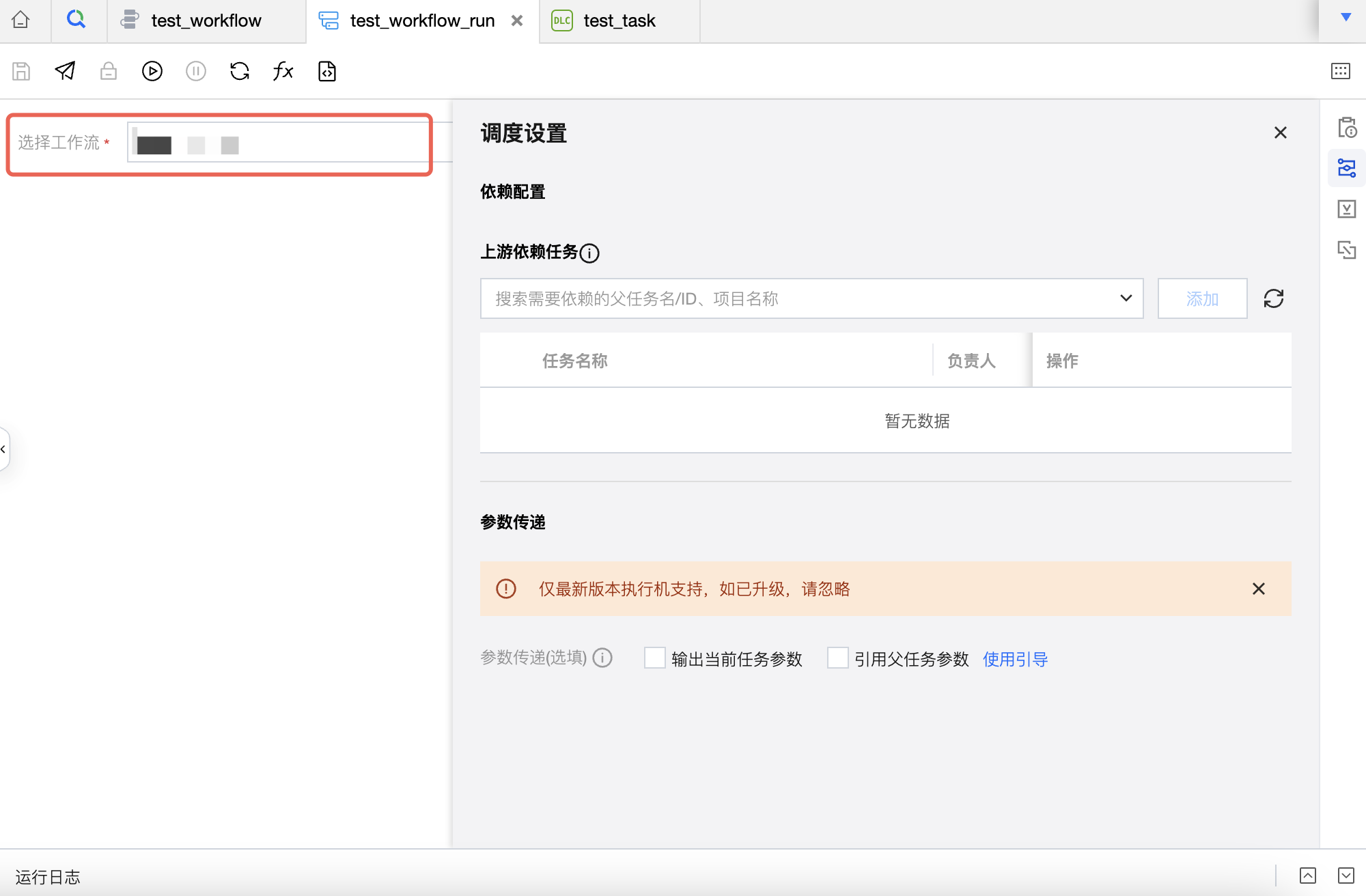上游依赖任务仅支持选择同工作流下其他任务。