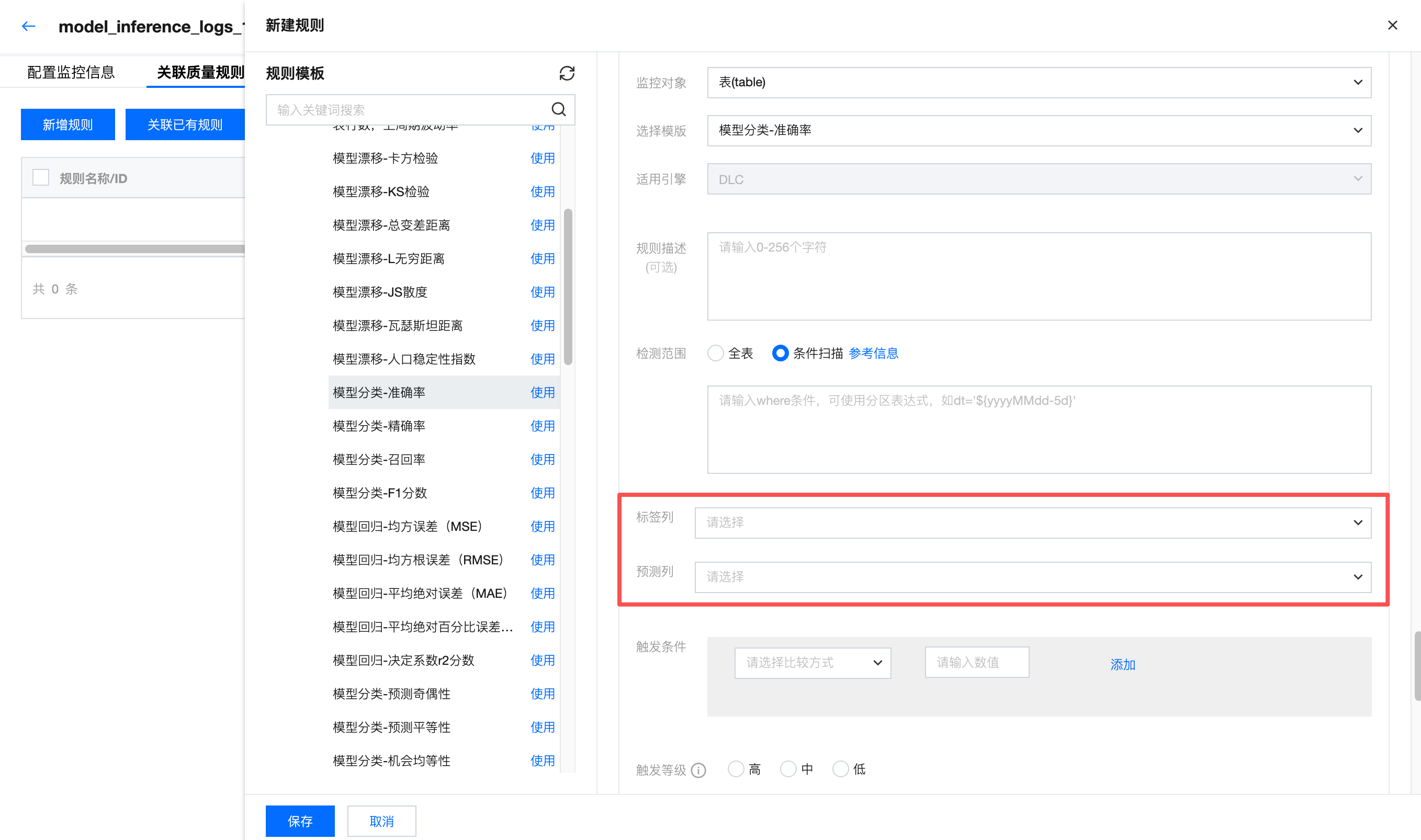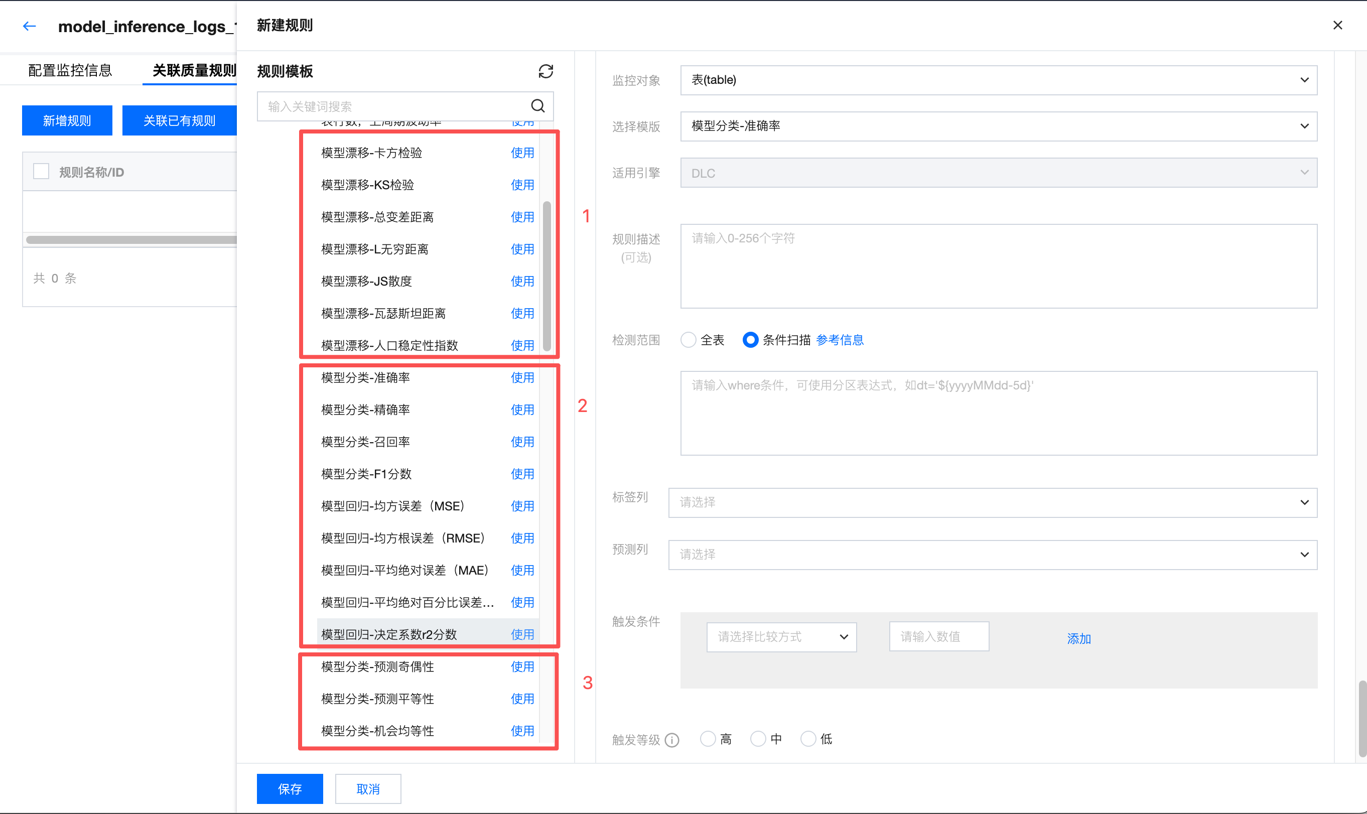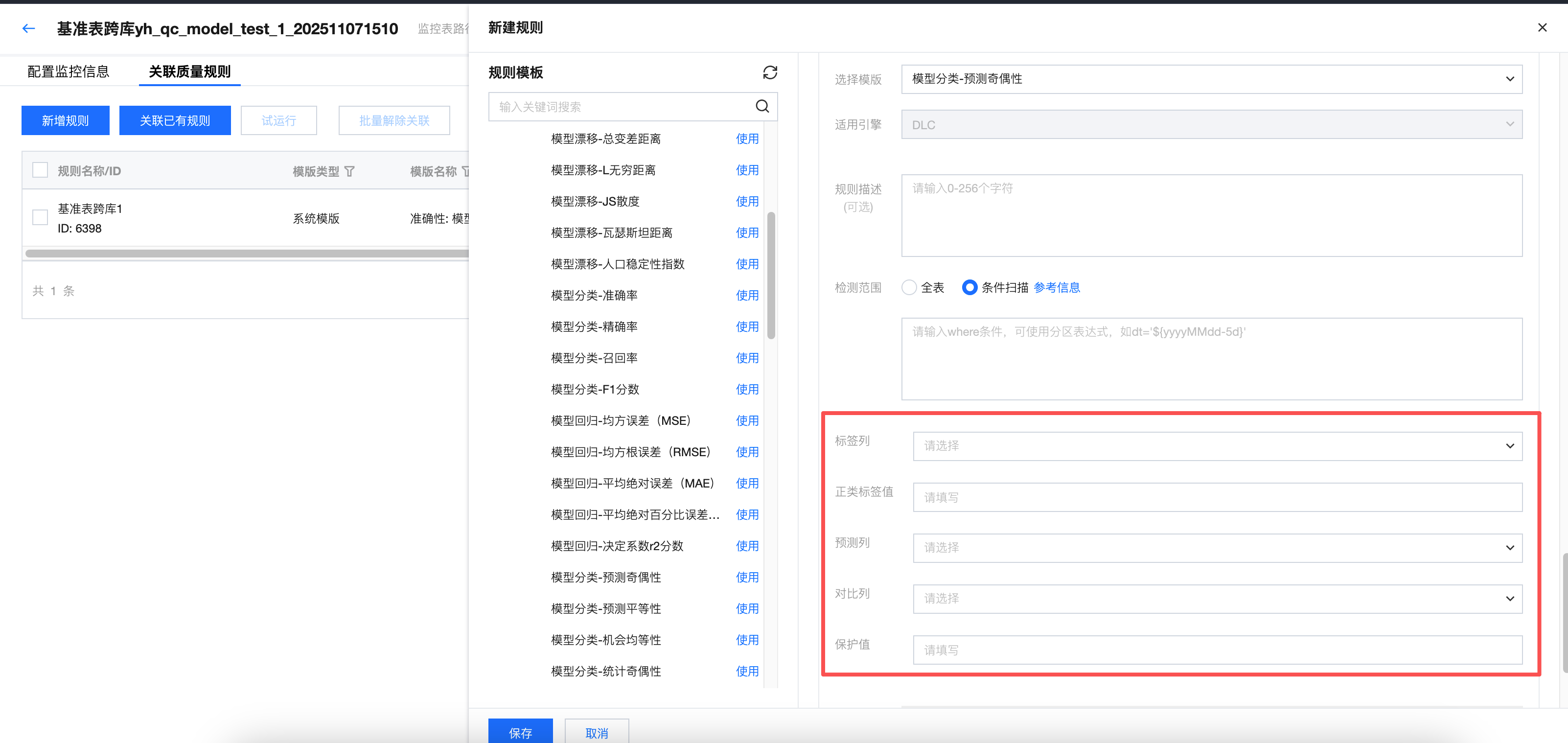 单击规则列表上的新建规则,弹出新建规则弹窗,支持选择进行质量校验。